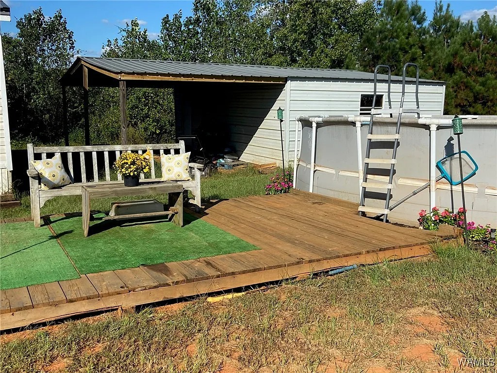 Furthermore, the home includes central heat and air conditioning for year-round comfort. A 12-by-24-foot wired shop offers space for hobbies, tools, or additional storage. Moreover, the above-ground pool and deck provide space for outdoor relaxation and summer entertainment. The property’s open acreage allows plenty of room for additional landscaping or outbuildings.