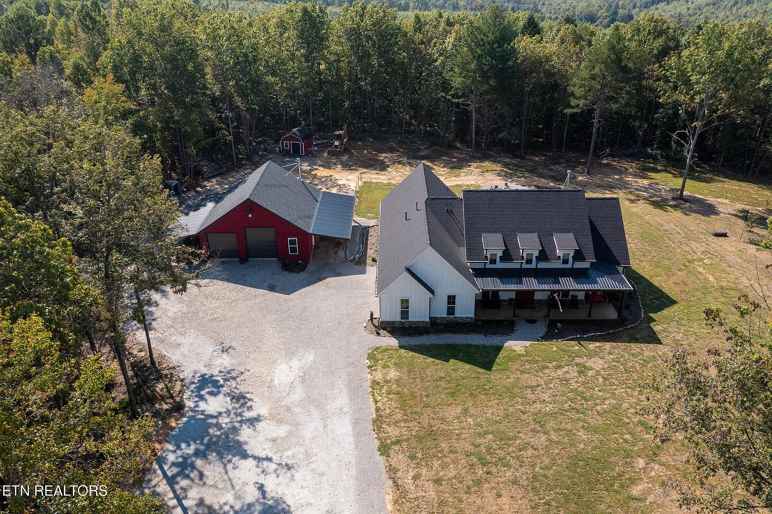 This 16.81-acre property in Sunbright, Tennessee, features a newly built ICF home completed in 2024. The 2,570-square-foot residence includes three bedrooms and three bathrooms. The house sits over 1,000 feet from the main road, offering both privacy and open views.