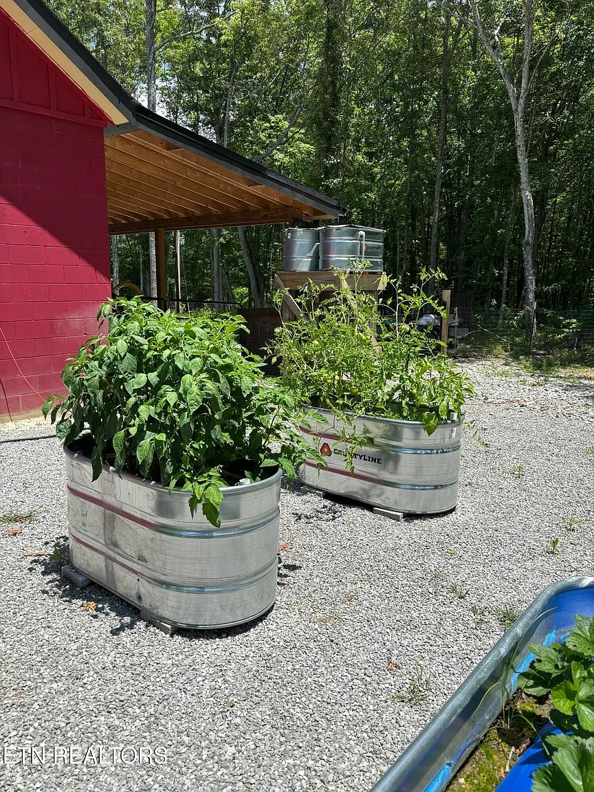 Meanwhile, the exterior uses durable cement board siding. The home connects to a 400-amp electrical service that splits power between structures. A generator setup provides backup electricity. Also, the property includes a rainwater collection system, self-watering garden beds, and multiple fruit trees. Grapes and berry plants grow throughout the grounds.
