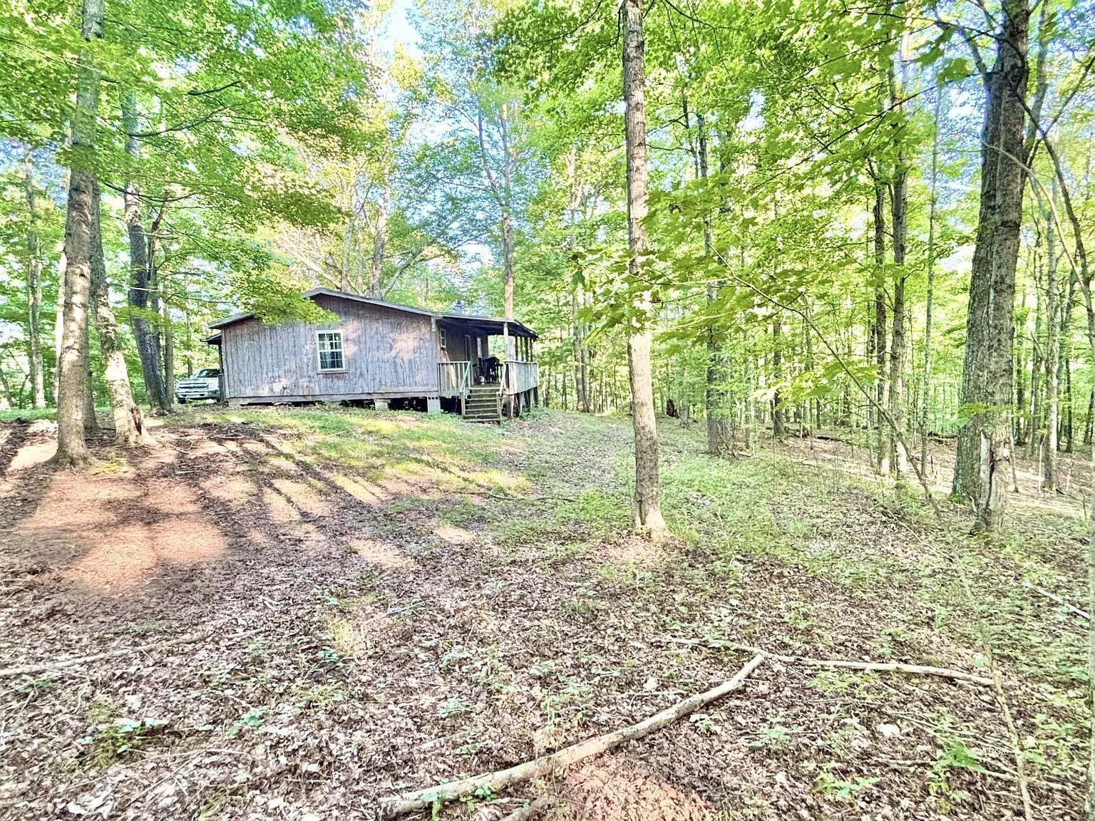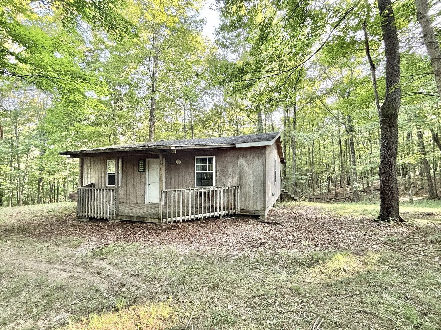 This 20-acre property in Vinton, Ohio, offers a rustic escape surrounded by mature timber and open woods. Built in 2008, the 678-square-foot cabin includes one bedroom and an open-concept layout. The space creates a simple and functional retreat for hunting weekends or peaceful getaways.