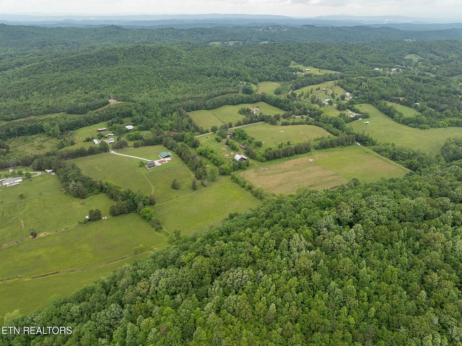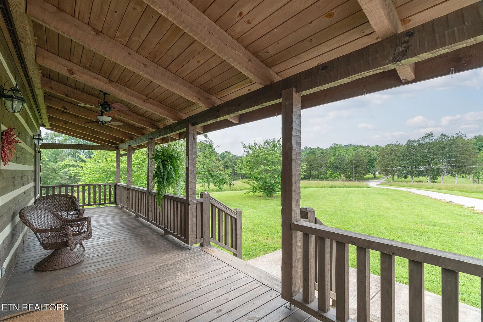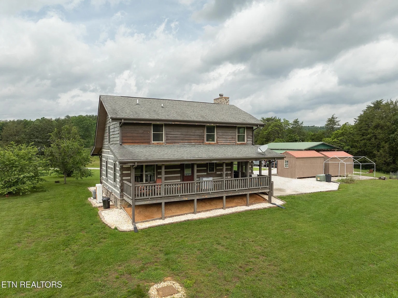This 25.8-acre property in Kingston, Tennessee, features a custom-built log cabin constructed in 2016. The 1,578-square-foot residence offers three bedrooms and two bathrooms, combining rustic design with modern amenities for year-round living or weekend use.