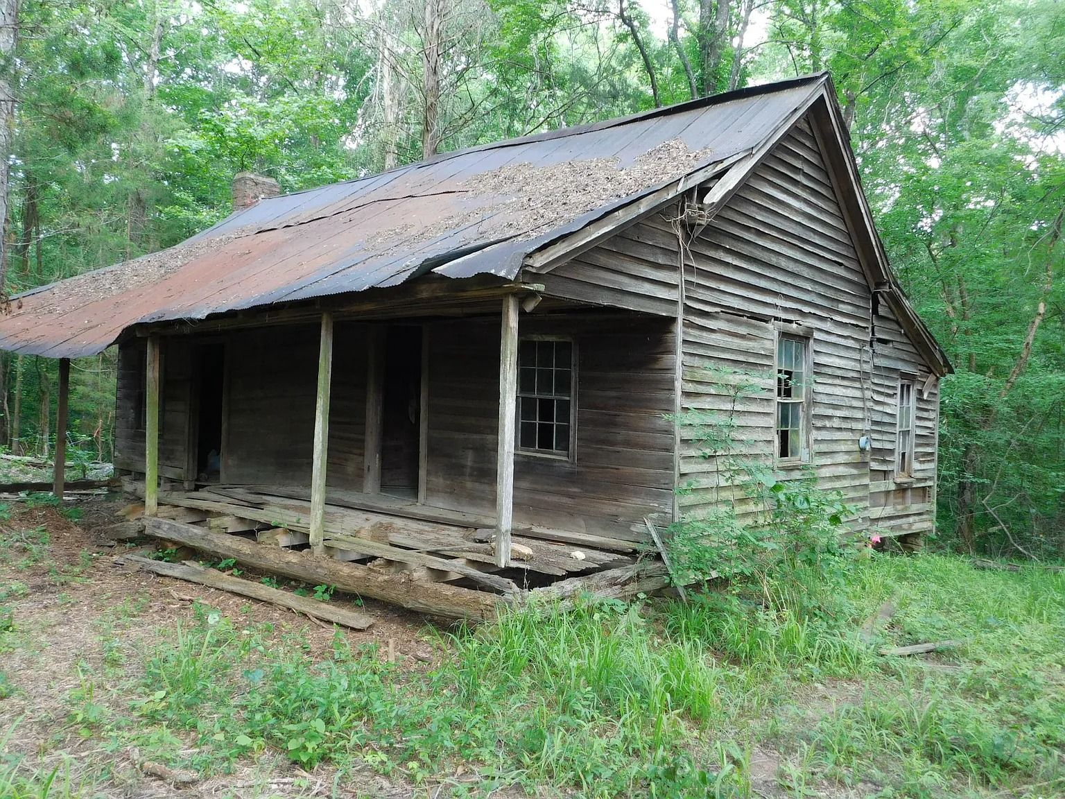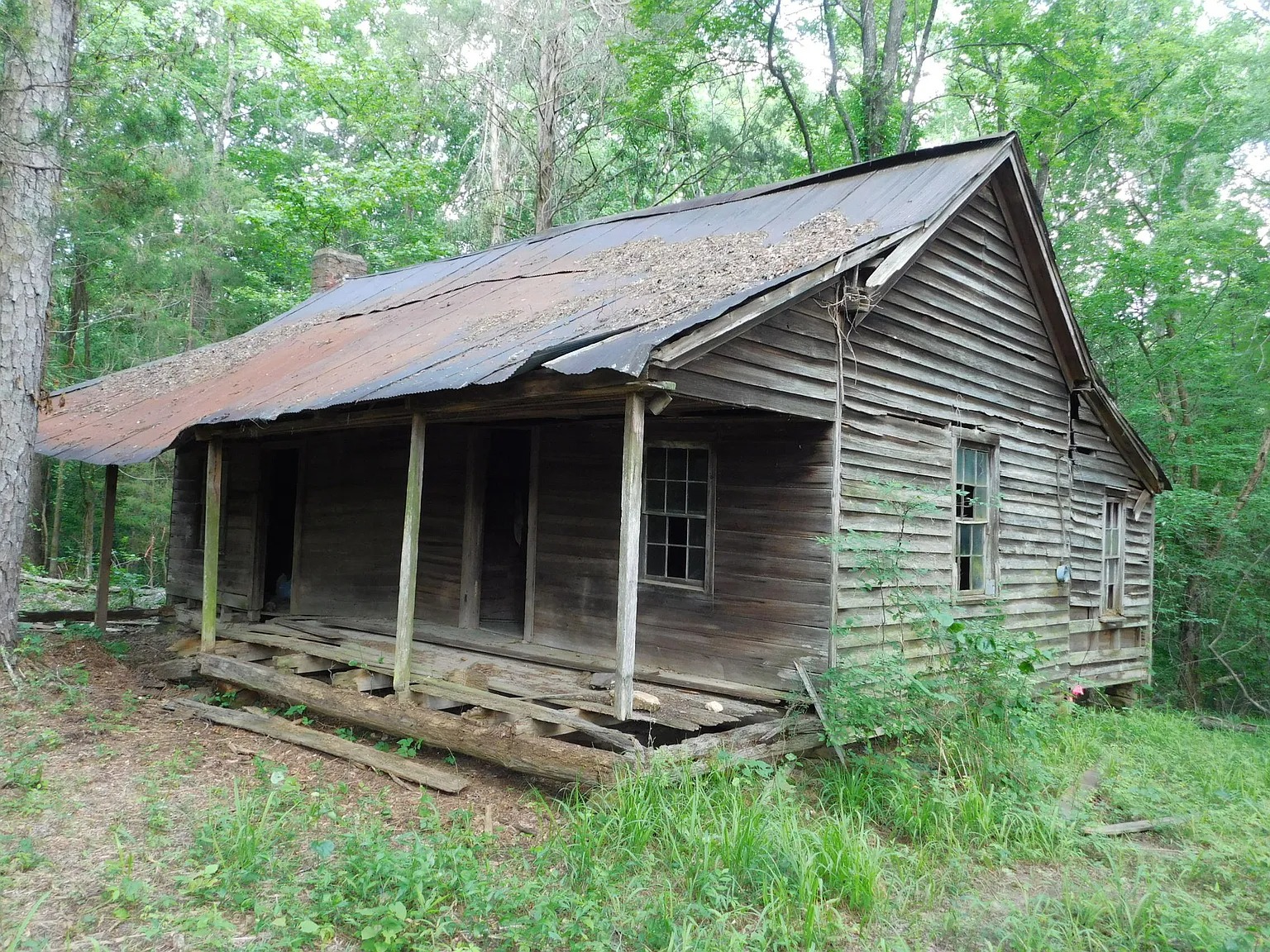 Also, the property includes a rustic wooden cabin built more than a century ago. The structure features original heart pine lumber and a vintage tin roof that reflect its early craftsmanship. In addition, buyers can restore the cabin for personal use or repurpose the materials for a custom building project. Both options preserve the site’s historic character while creating something new.