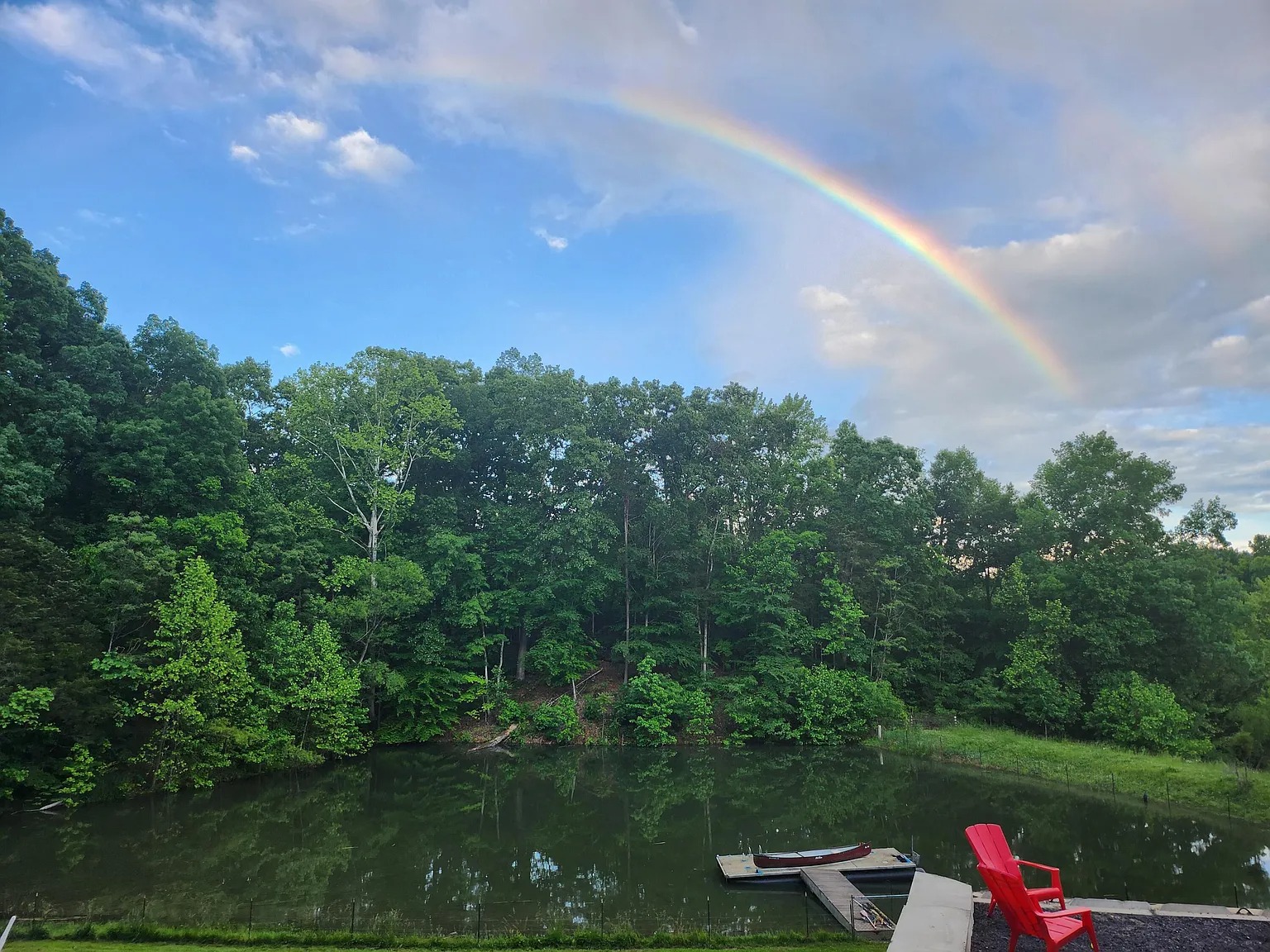 In addition, the property features a large stocked pond and views of a nearby lake. These water elements create options for fishing, relaxing, and enjoying the scenery. The setting highlights the balance between natural landscape and everyday living.