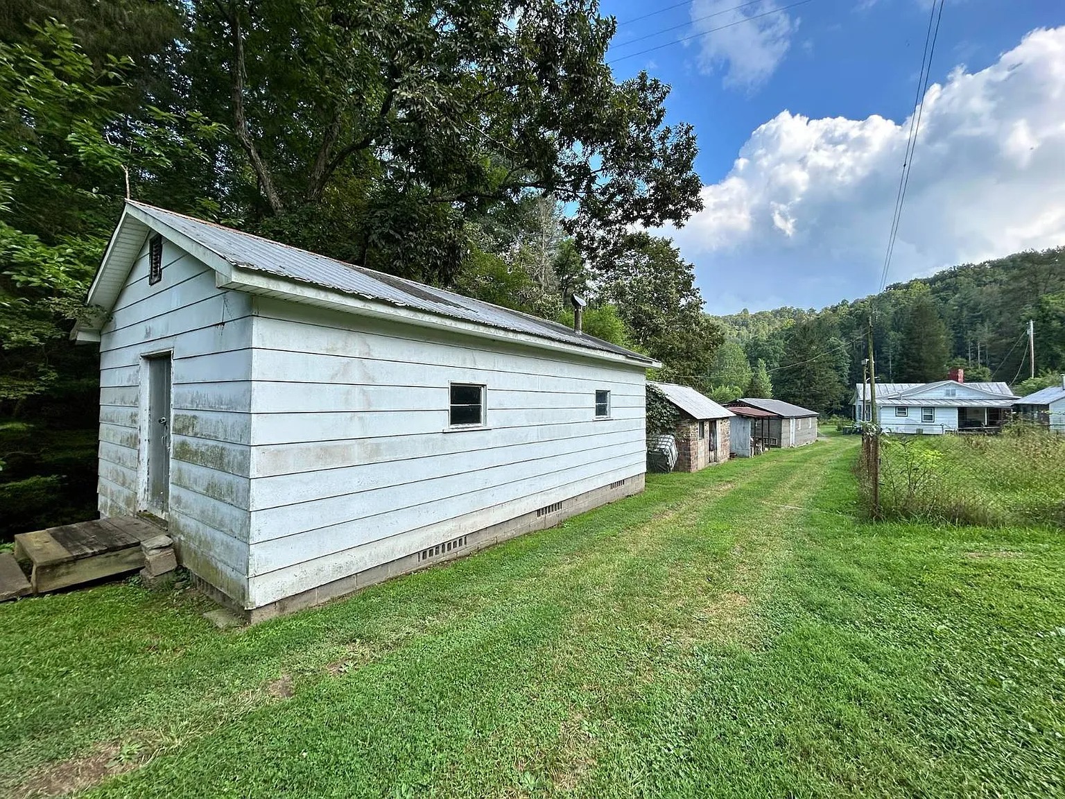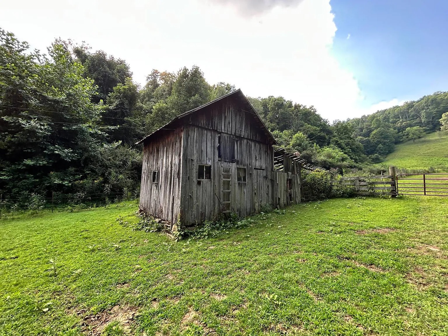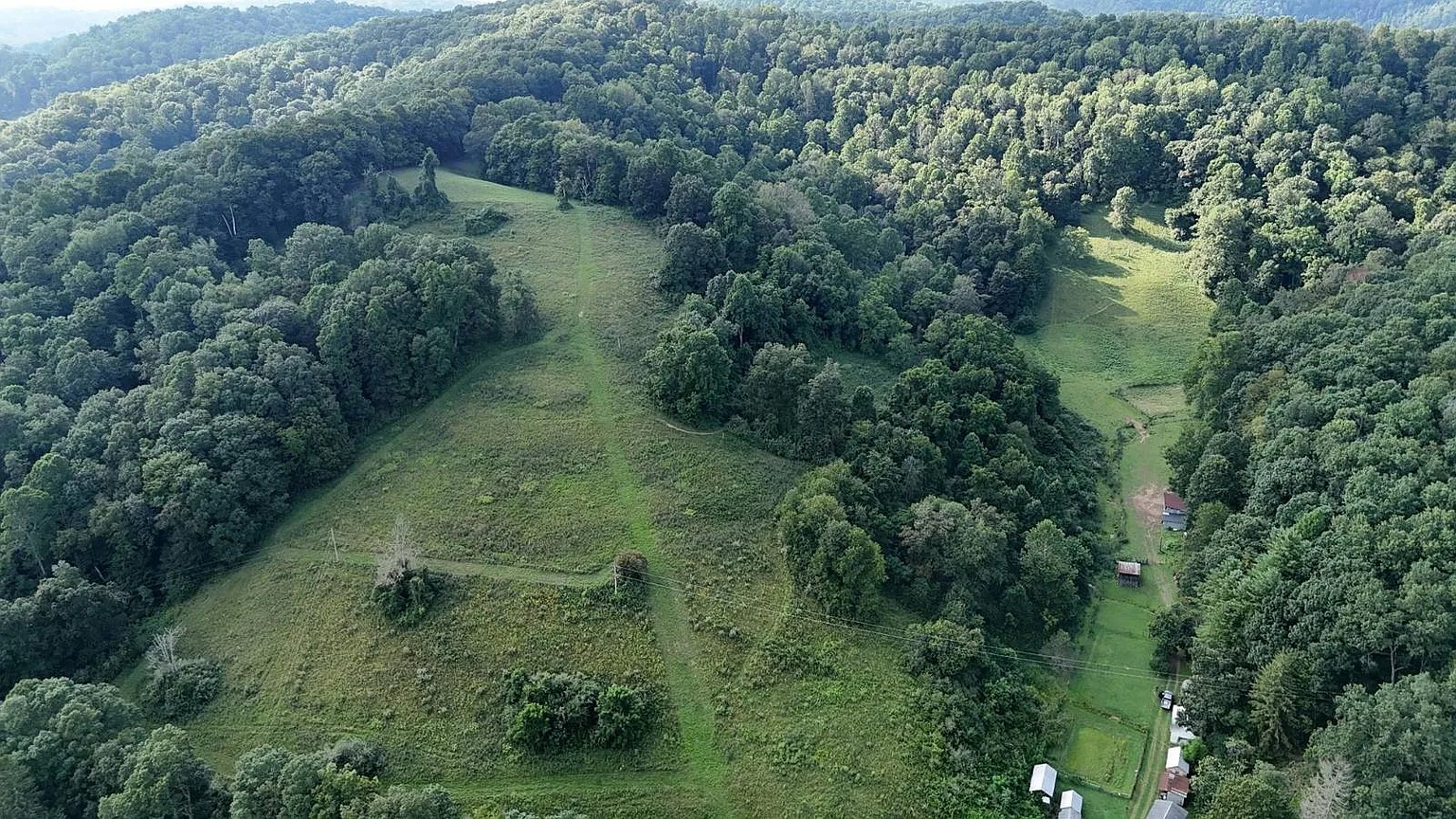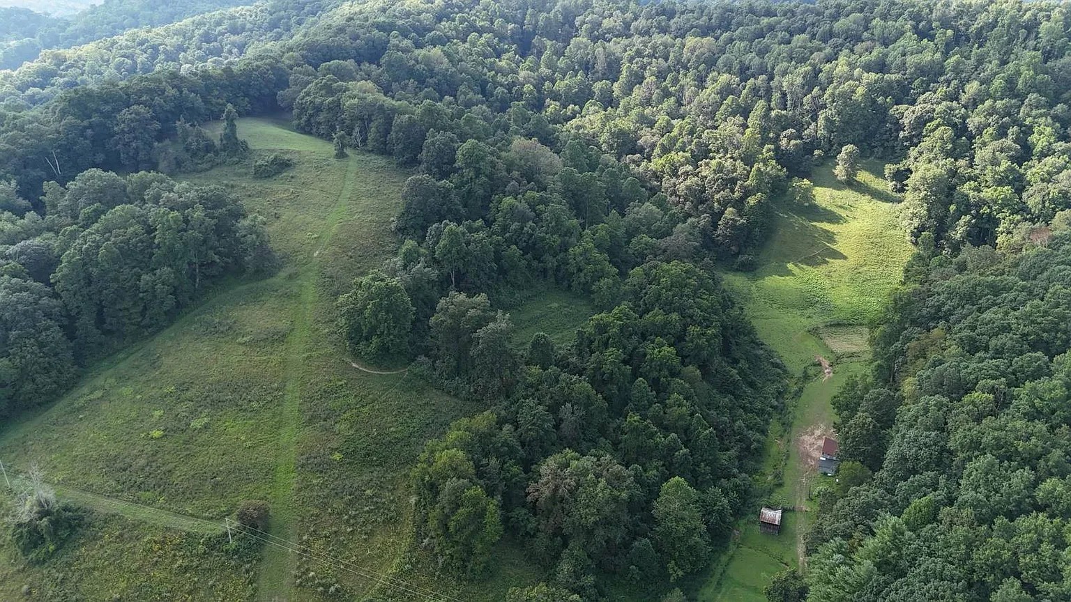 This 63-acre property in Wallace, West Virginia, pairs open pasture with wooded hillsides. The 1,064-square-foot home offers two bedrooms and one bathroom for simple living or a weekend base.