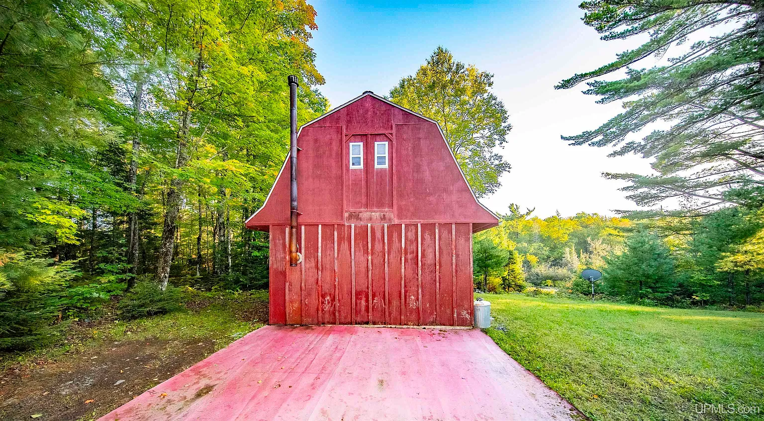 This barn style home sits on 78 acres in Amasa, Michigan. Built in 1995, the single-level structure measures 352 square feet with 1 bedroom and 0 bathrooms. It includes a wood burning stove and a new sauna. The property features over 6,200 feet of frontage on the Net River. Many people check out acreage properties like this when they want a simple base for outdoor activities in the Northwoods of Michigan’s Upper Peninsula.