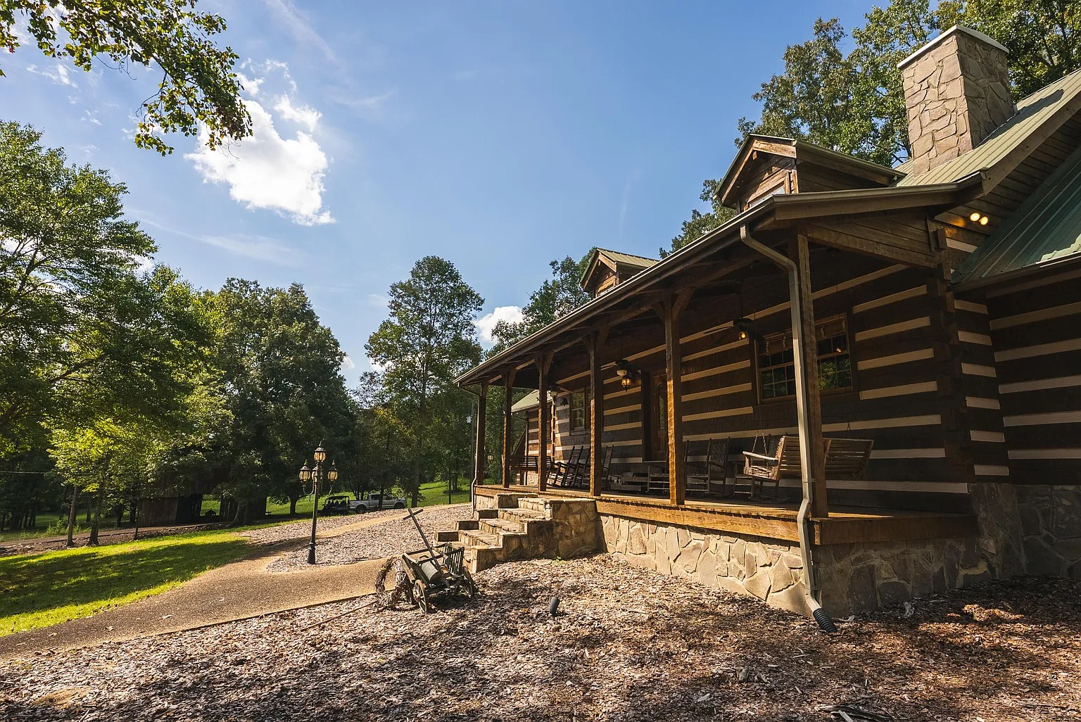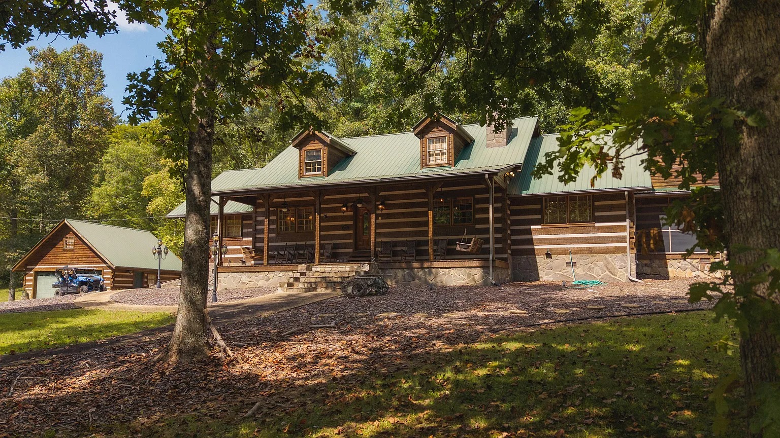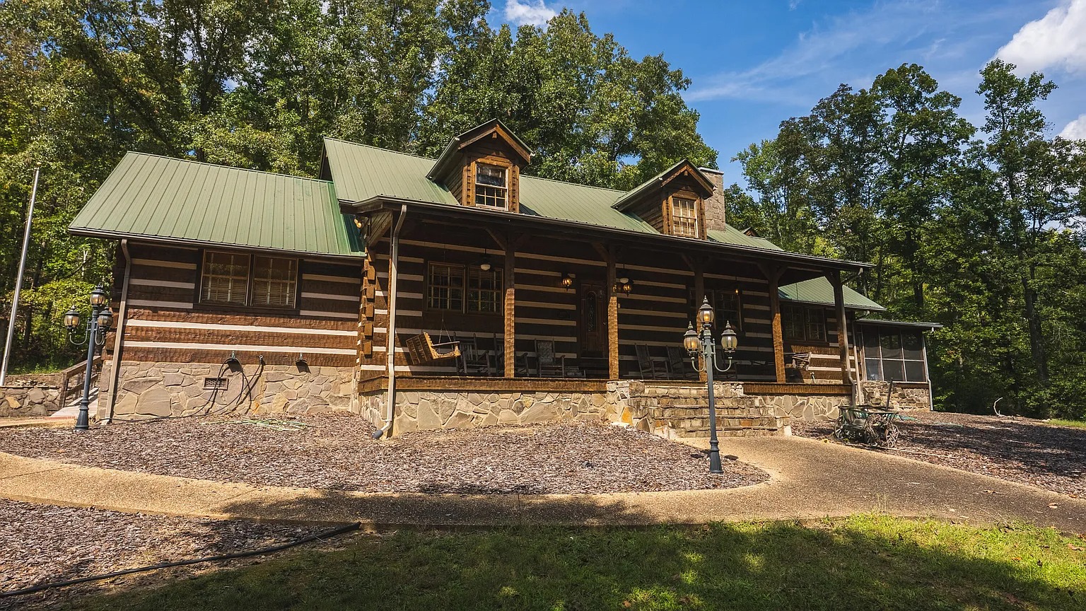This 588-acre property in Mooresburg, Tennessee, combines a spacious lodge with expansive Appalachian foothills. Built in 1993, the 3,759-square-foot home includes six bedrooms and five bathrooms, offering space for both family and guests.