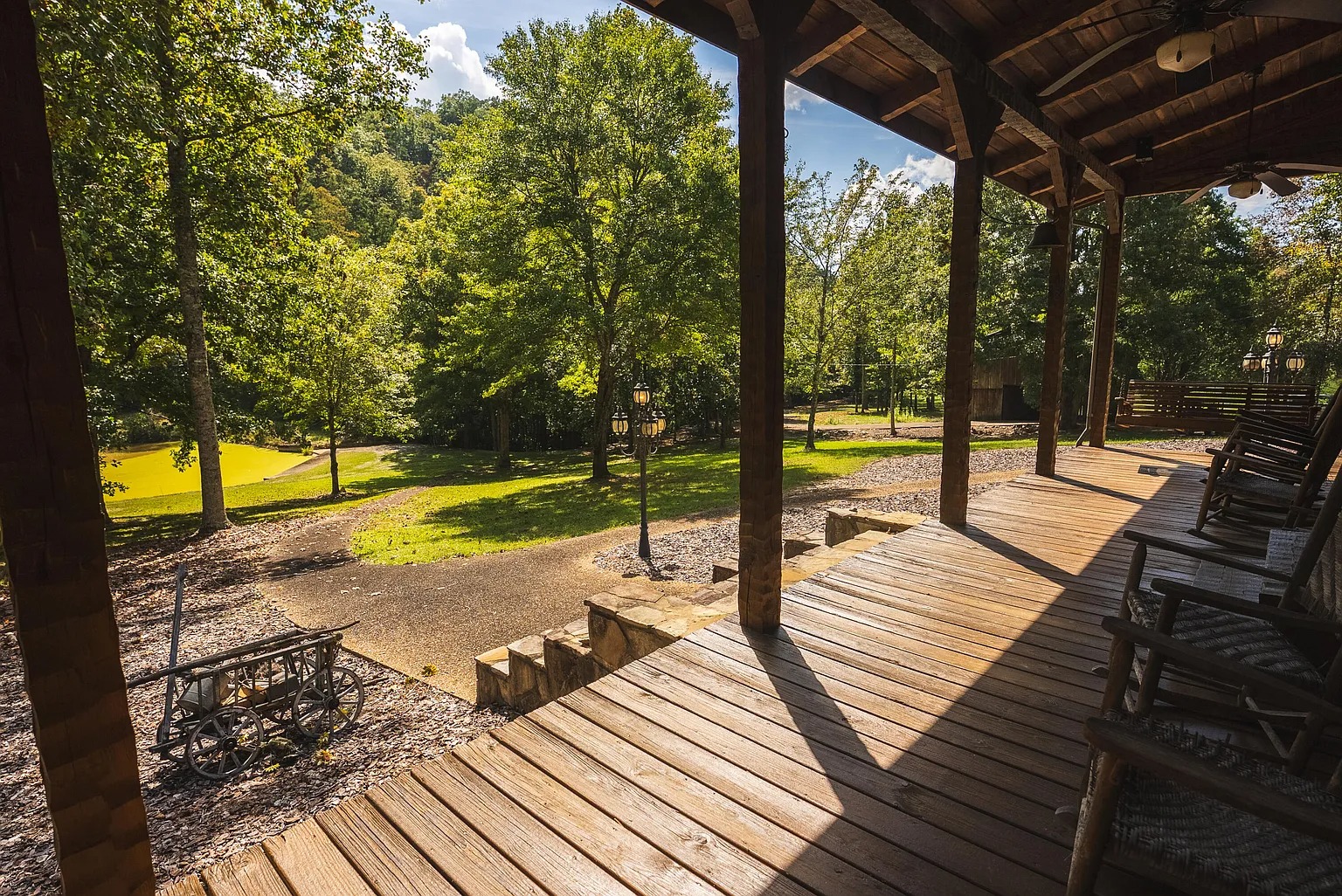 Also, the acreage itself defines this retreat. Rolling fields, wooded ridges, and streams shape the land. A private lake and mountain springs add natural beauty. Established trails provide access for hiking, ATV riding, or horseback use. In addition, food plots and blinds already support hunting for deer, turkey, and bear.