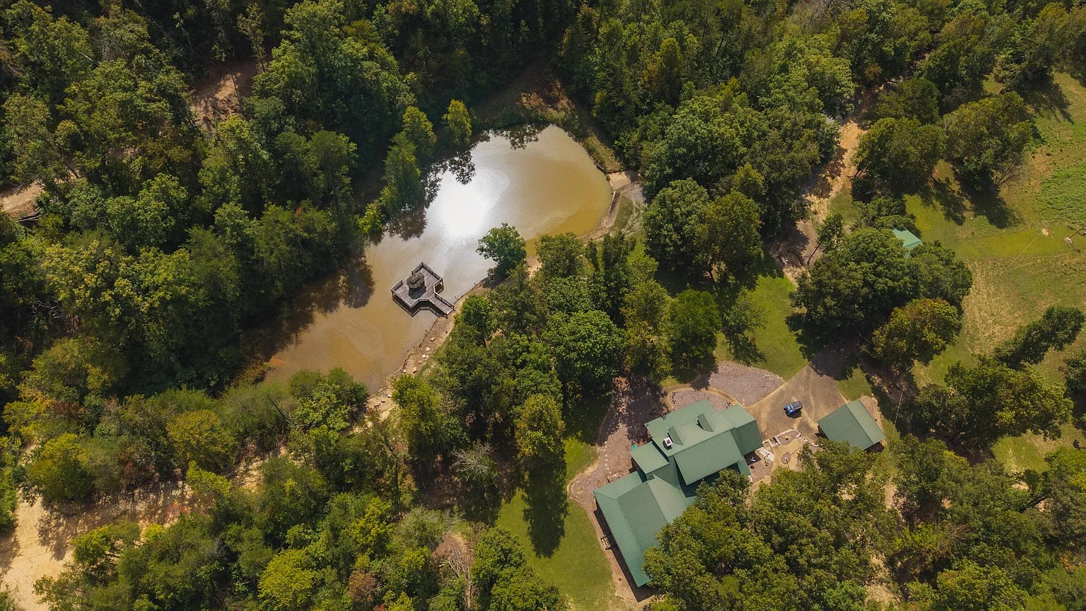 Meanwhile, the property balances seclusion with access to nearby towns. The location provides both privacy and convenience, with thousands of feet of wooded frontage and water resources.