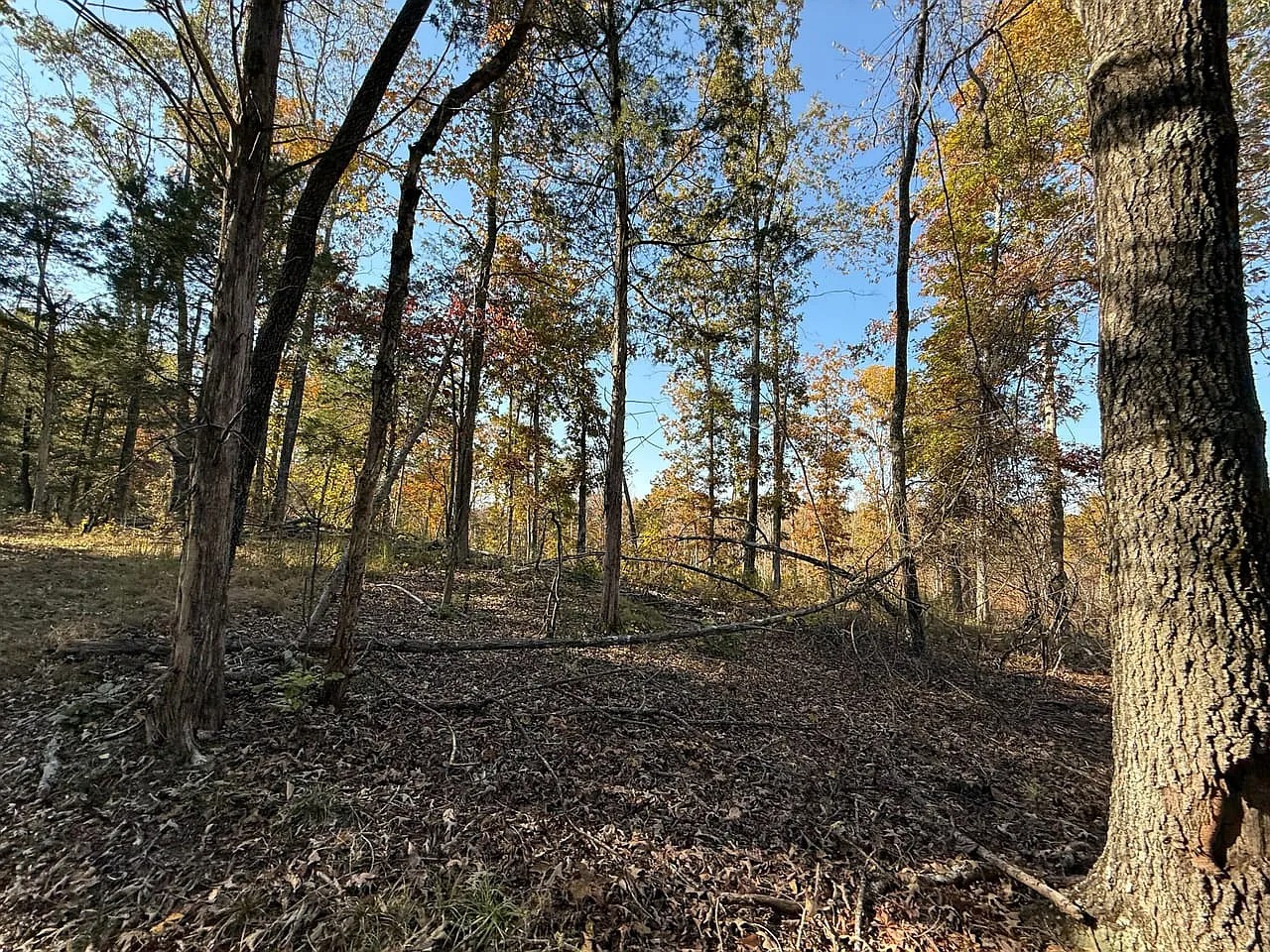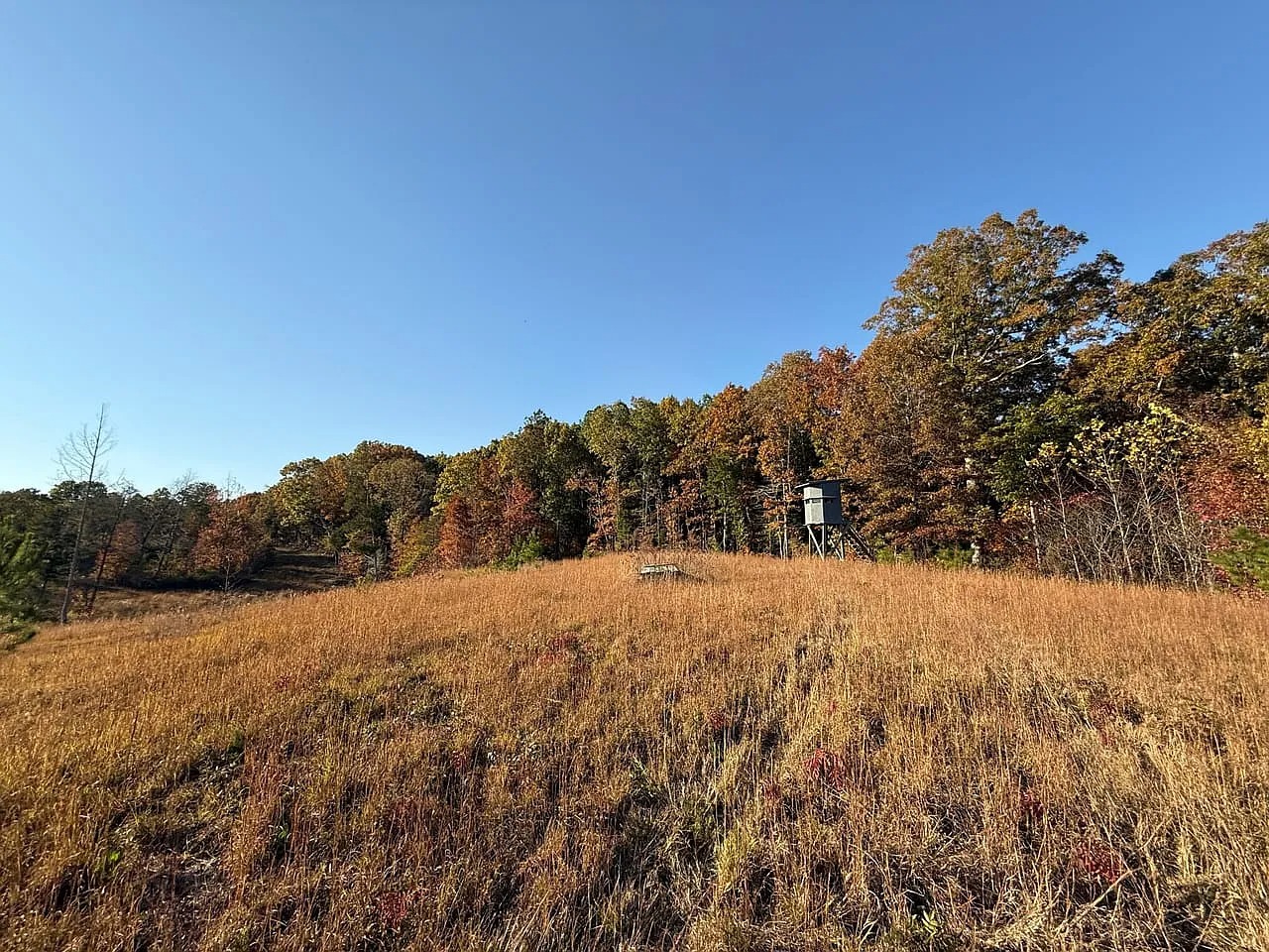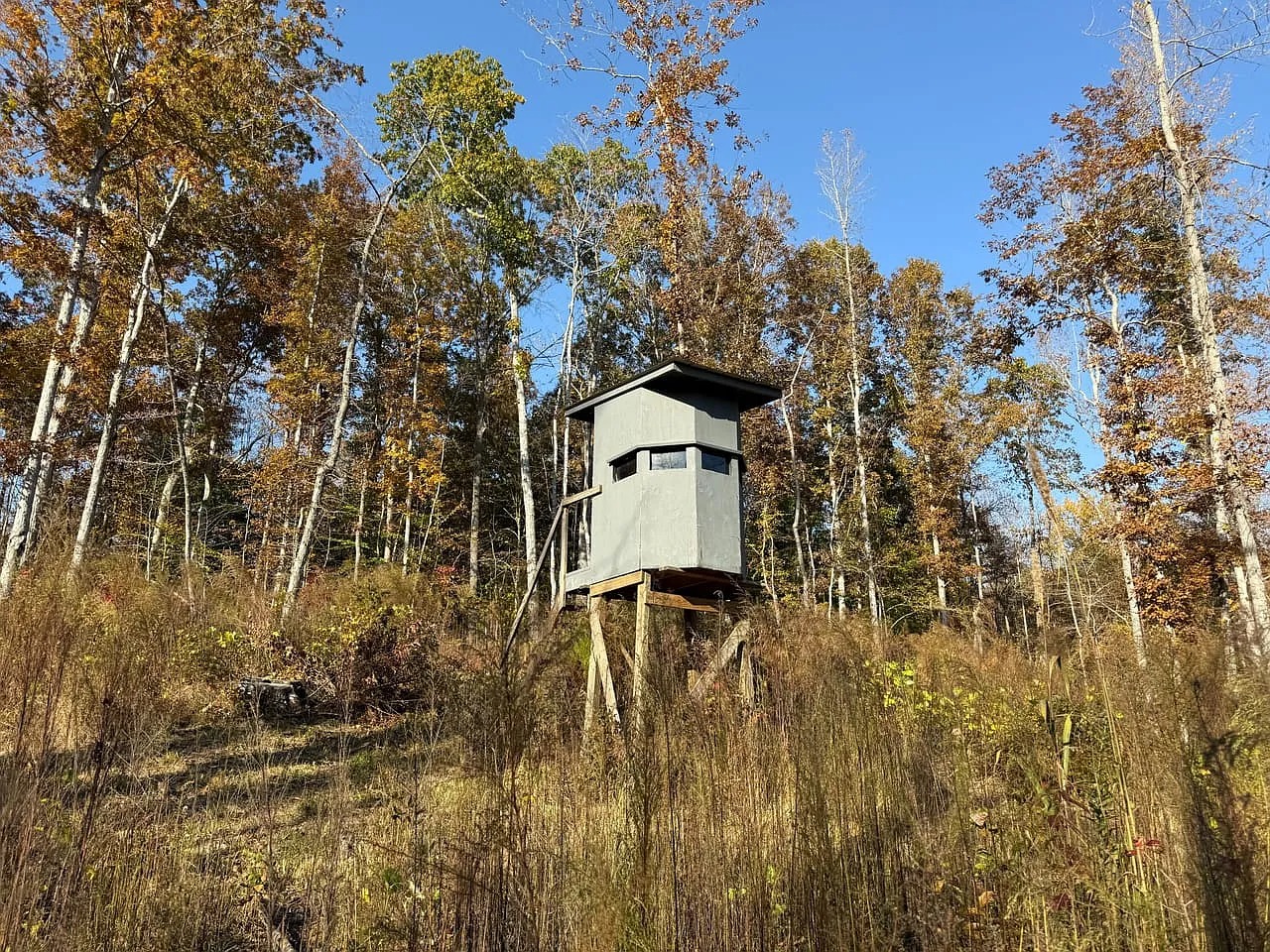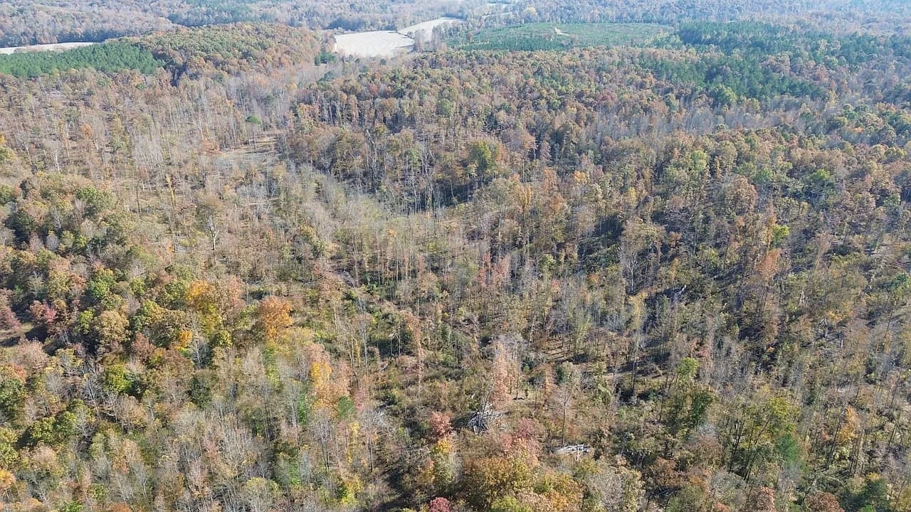 Approximately eighty acres received recent select-cut management for healthy regrowth. The remaining acreage consists of mature hardwood timber. Food plots, stands, and shooting houses already sit across the property. A spring-fed pond and a stream add water sources and scenery. Because habitat remains diverse, deer and turkey activity stays consistent. The land supports hunting and wildlife observation throughout the year.