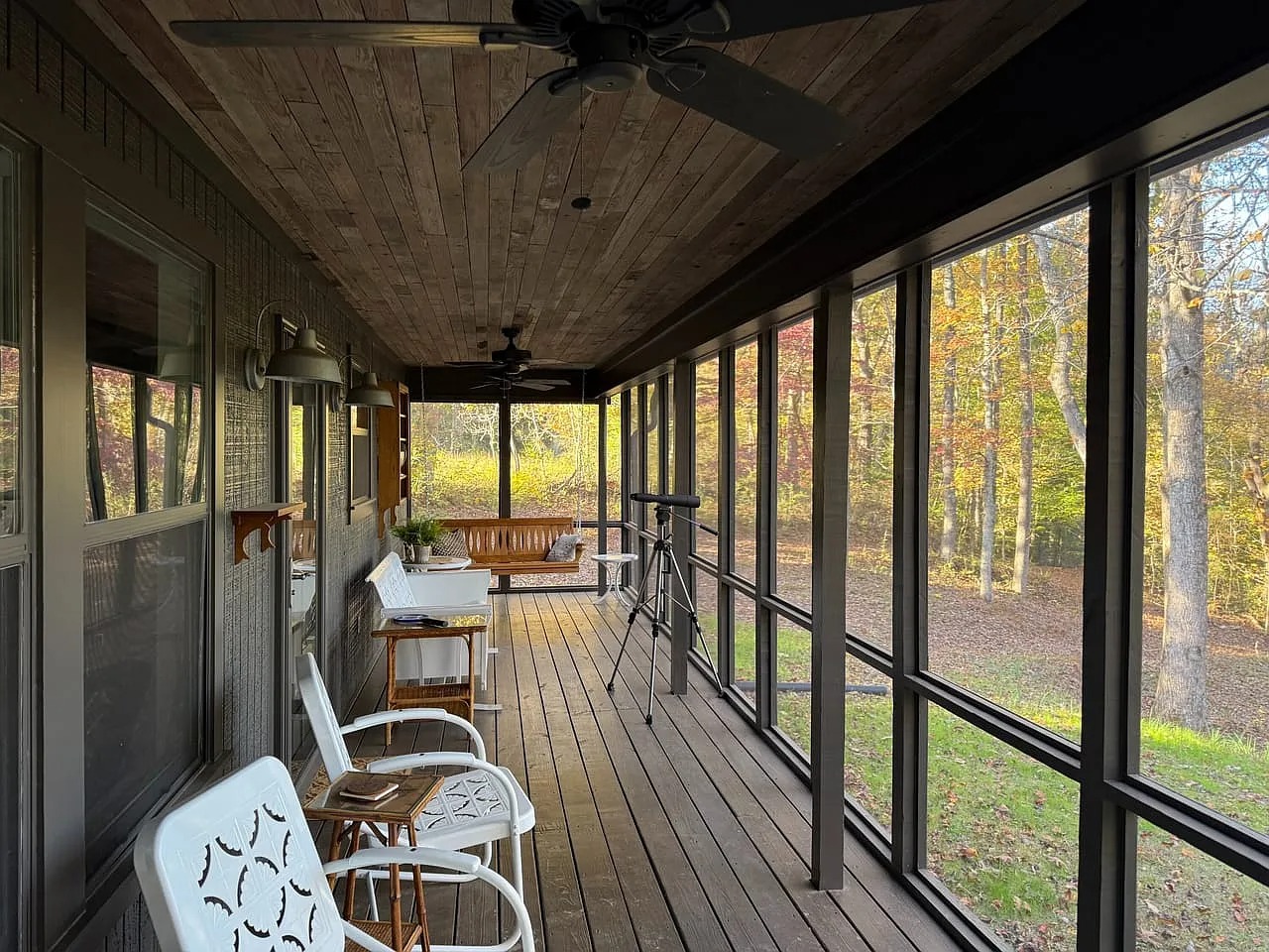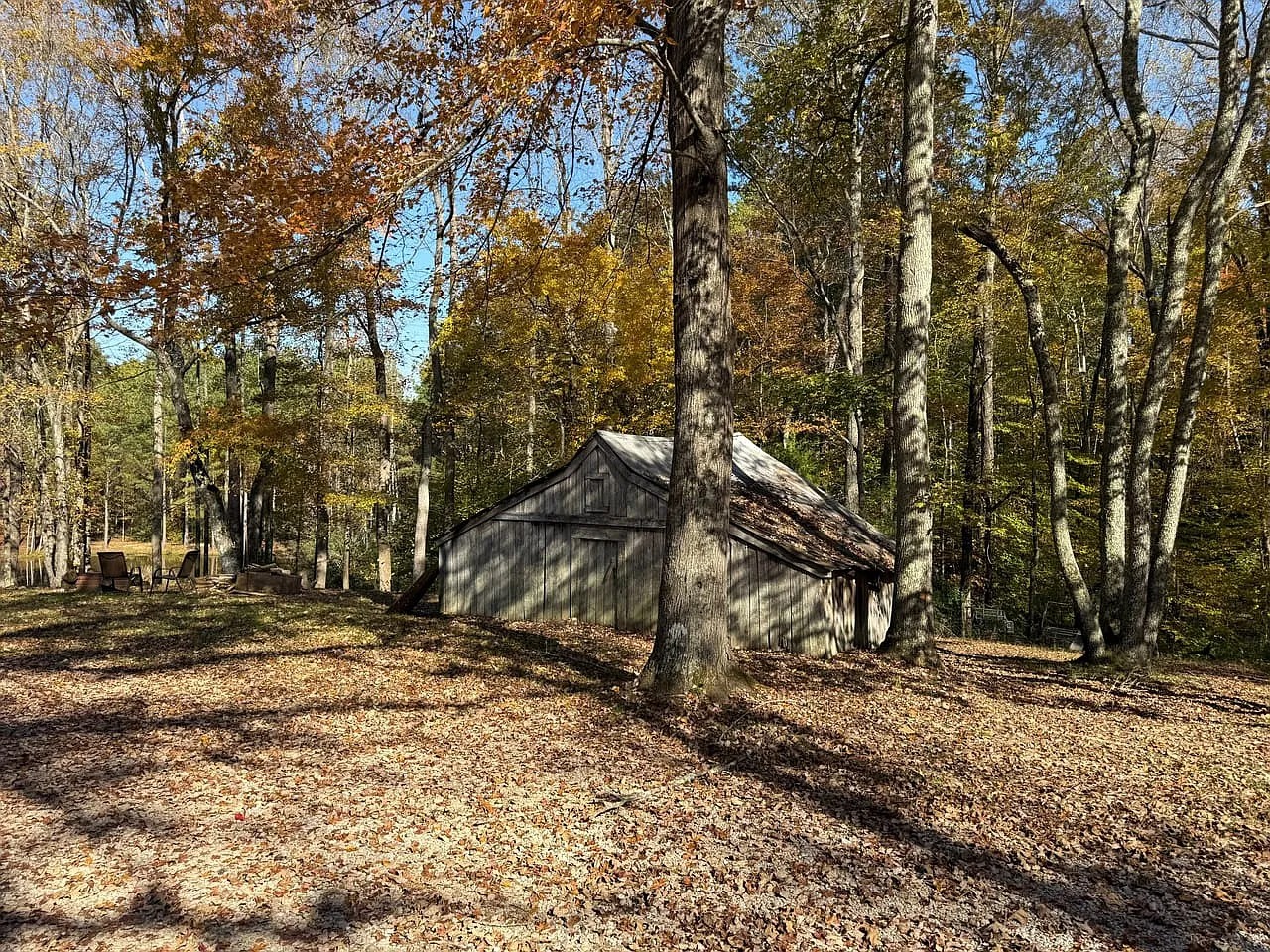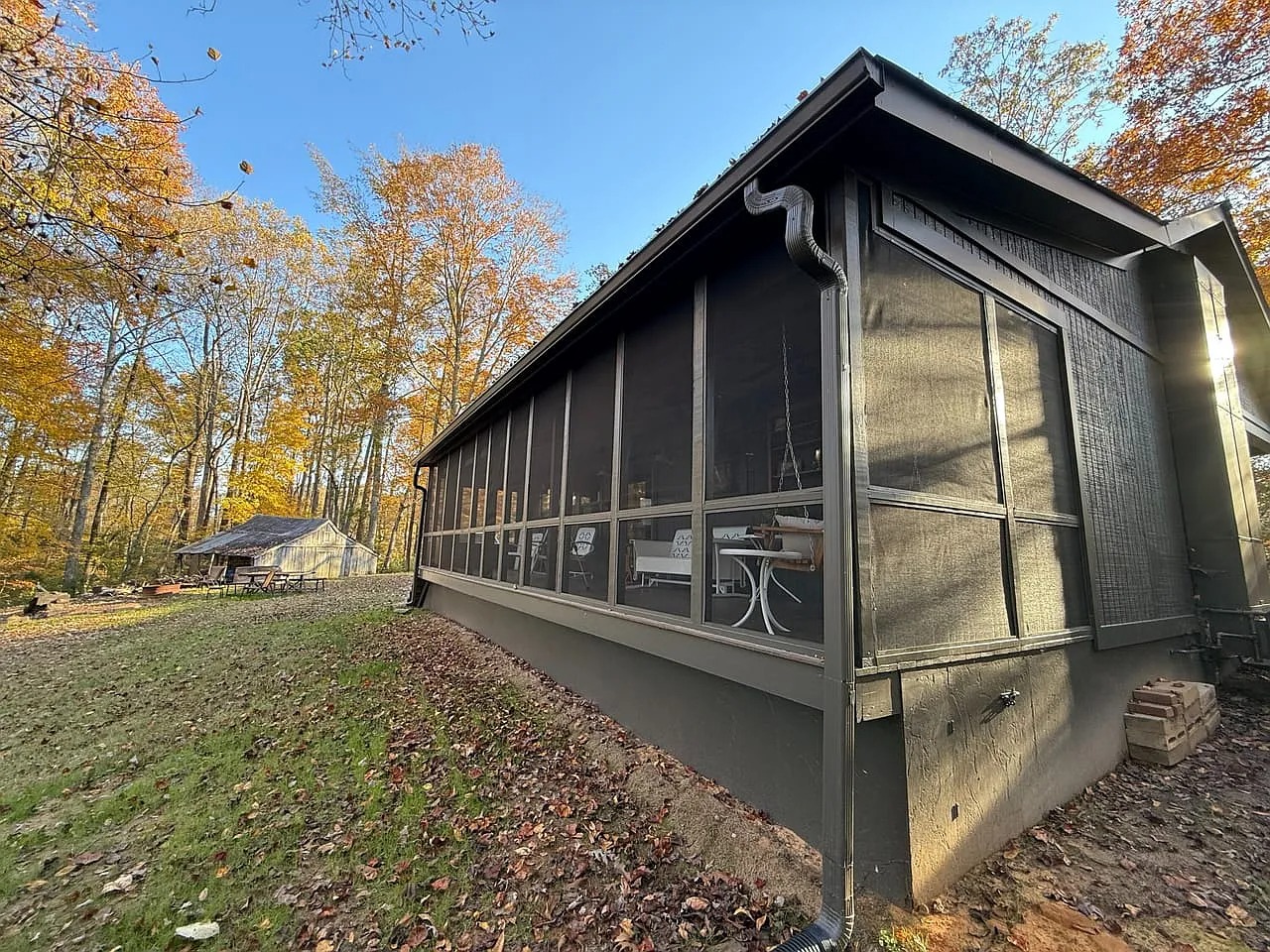 A well-built cabin provides about 1,100 square feet of living space. The layout includes a living room and open kitchen area. Two bedrooms and one bathroom support overnight stays or longer visits. A laundry room adds everyday function. Additionally, a large screened porch overlooks a nearby pond. Because this space extends living outdoors, evenings feel relaxed and unhurried. The cabin supports practical comfort within a rural landscape.