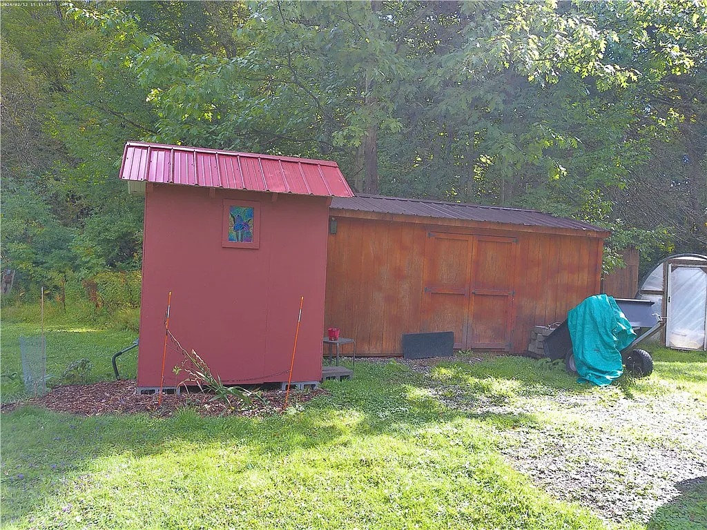 Meanwhile, the property’s mix of structures and land supports gardening, hobbies, or storage. The combination of open yard and wooded ground provides flexibility for different uses.