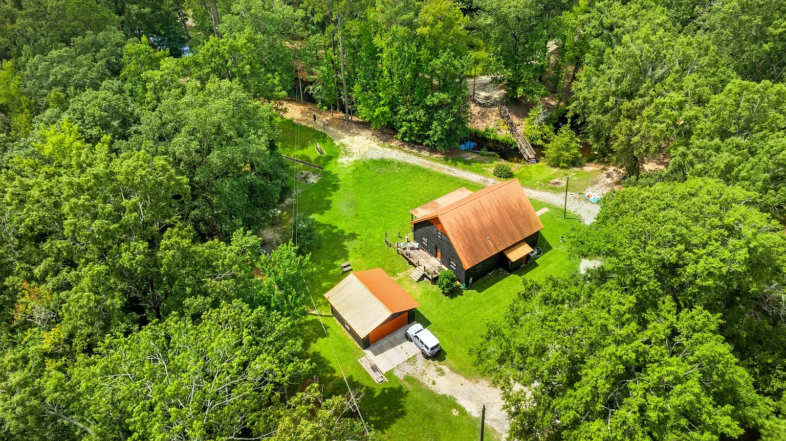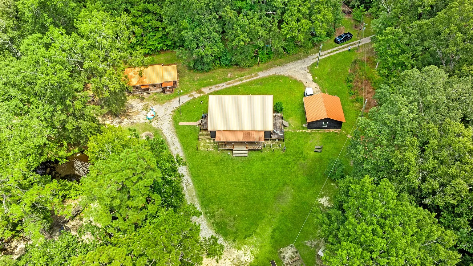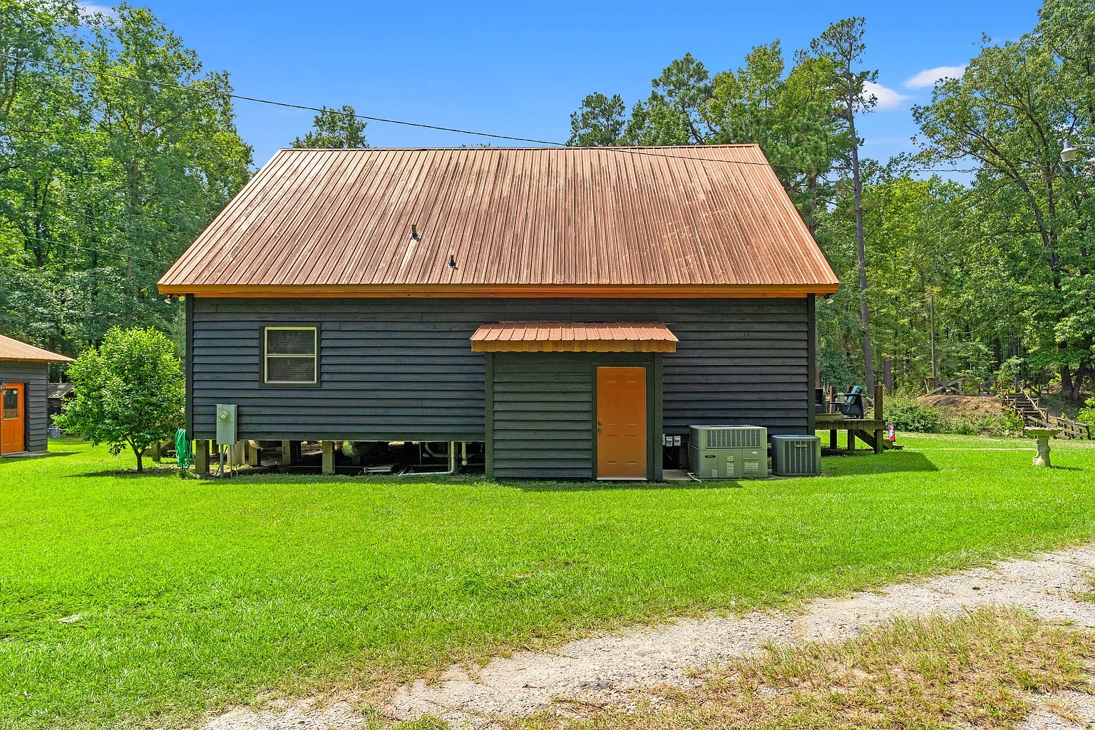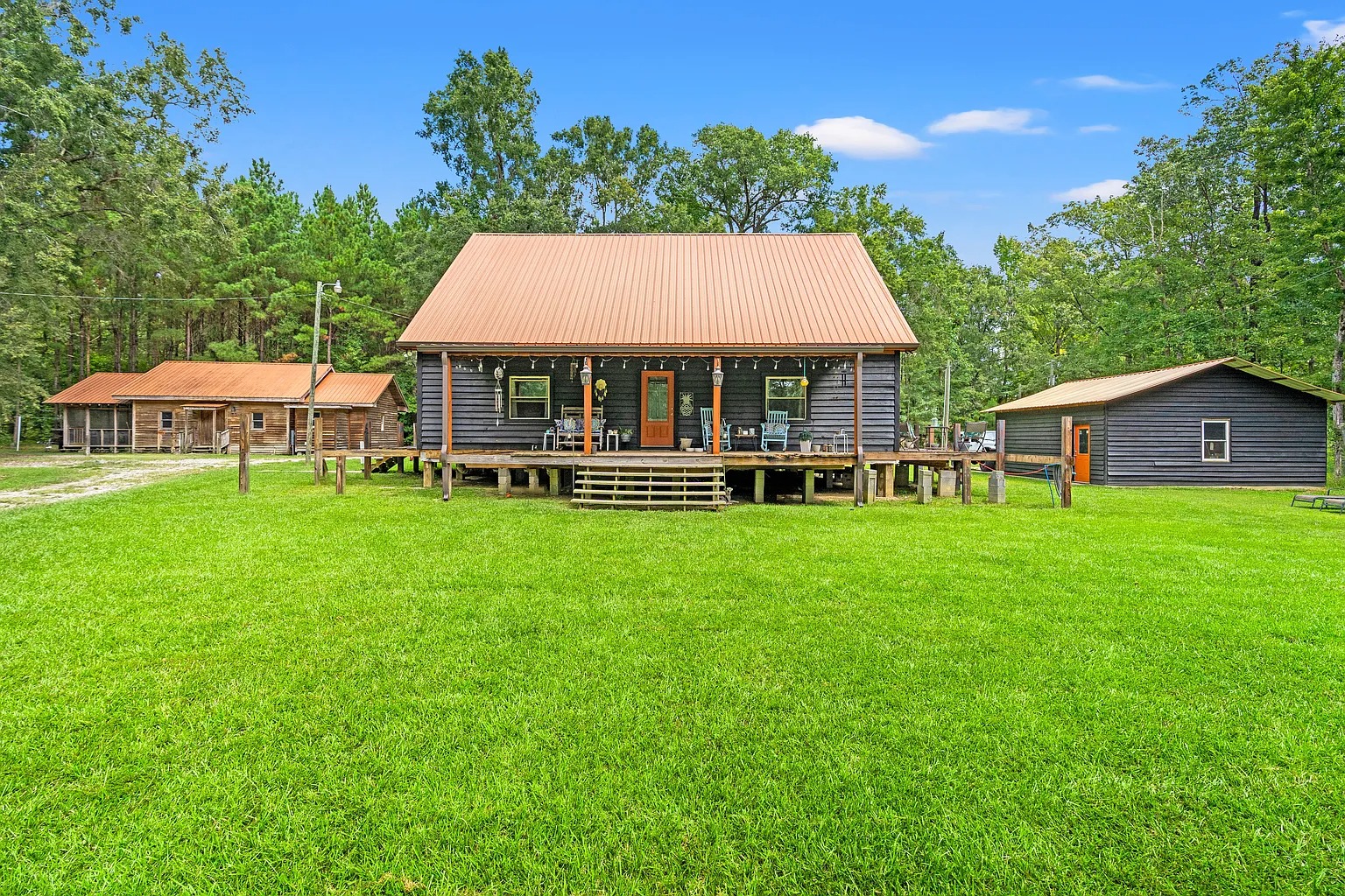 A second home adds flexibility for hosting or multi-generational living. Therefore, guests can enjoy their own space while staying close for shared meals and activities. Also, the screened porch encourages long evenings outside, swapping stories after a day on the land. For this reason, the second residence supports recreation-focused lifestyles or seasonal gatherings. Plus, the warm interior design blends comfort with a relaxed, rural atmosphere.