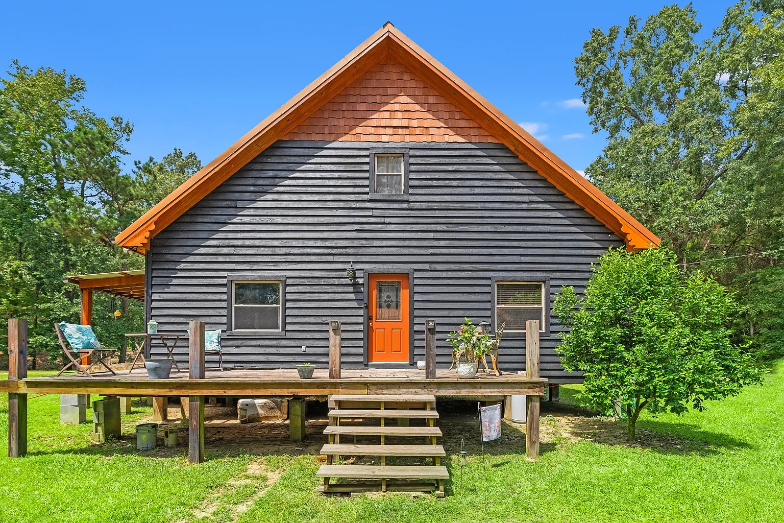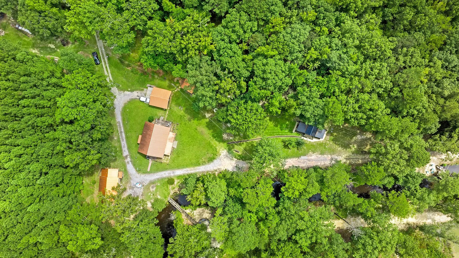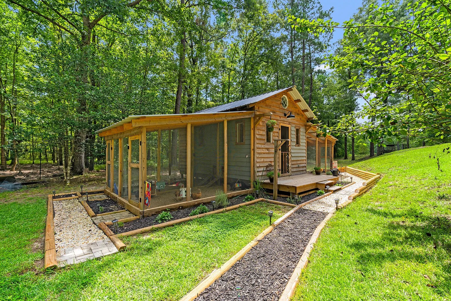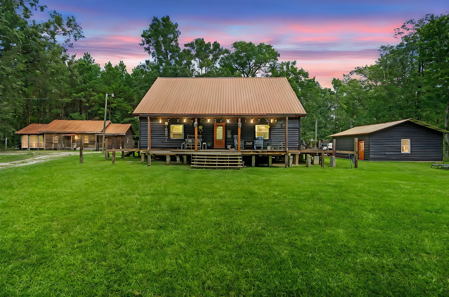 A second home adds flexibility for hosting or multi-generational living. Therefore, guests can enjoy their own space while staying close for shared meals and activities. Also, the screened porch encourages long evenings outside, swapping stories after a day on the land. For this reason, the second residence supports recreation-focused lifestyles or seasonal gatherings. Plus, the warm interior design blends comfort with a relaxed, rural atmosphere.