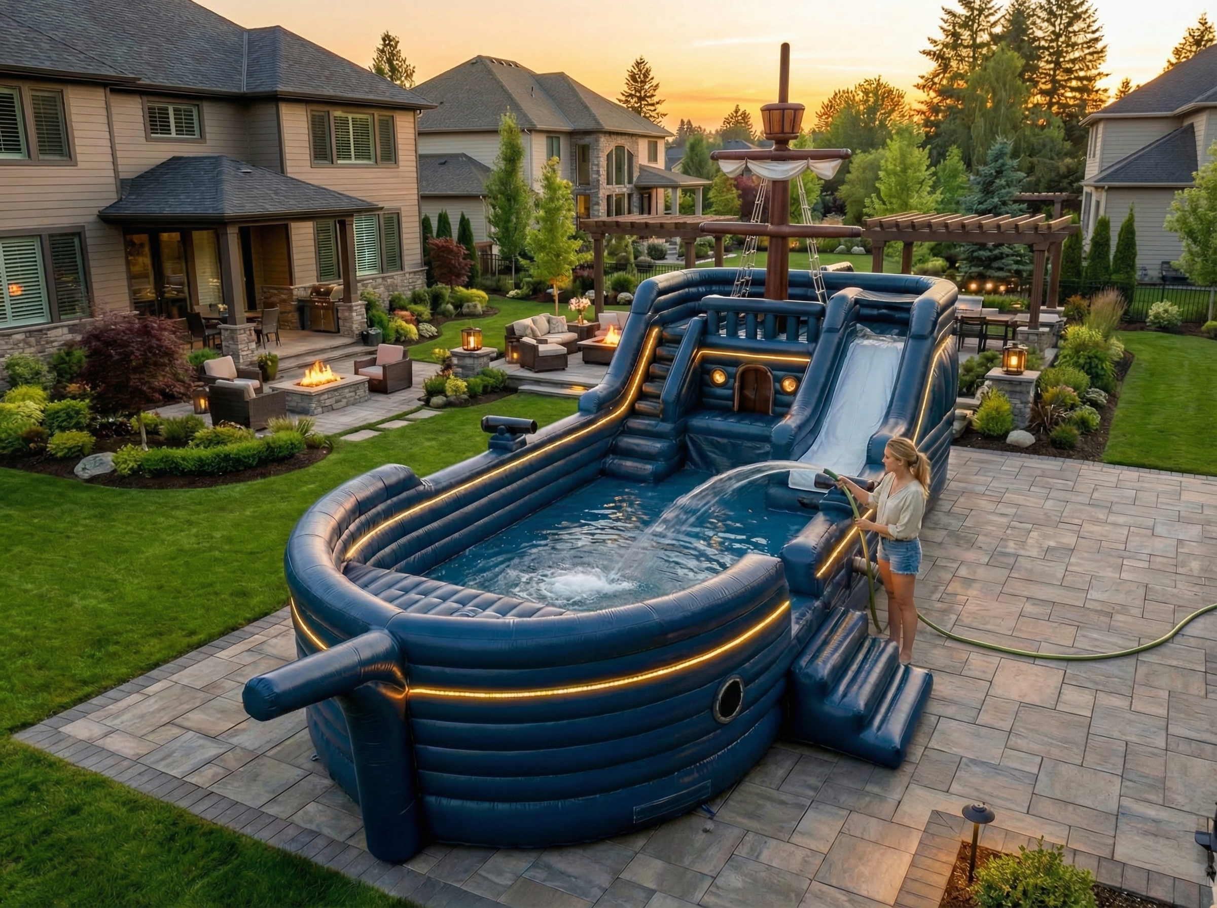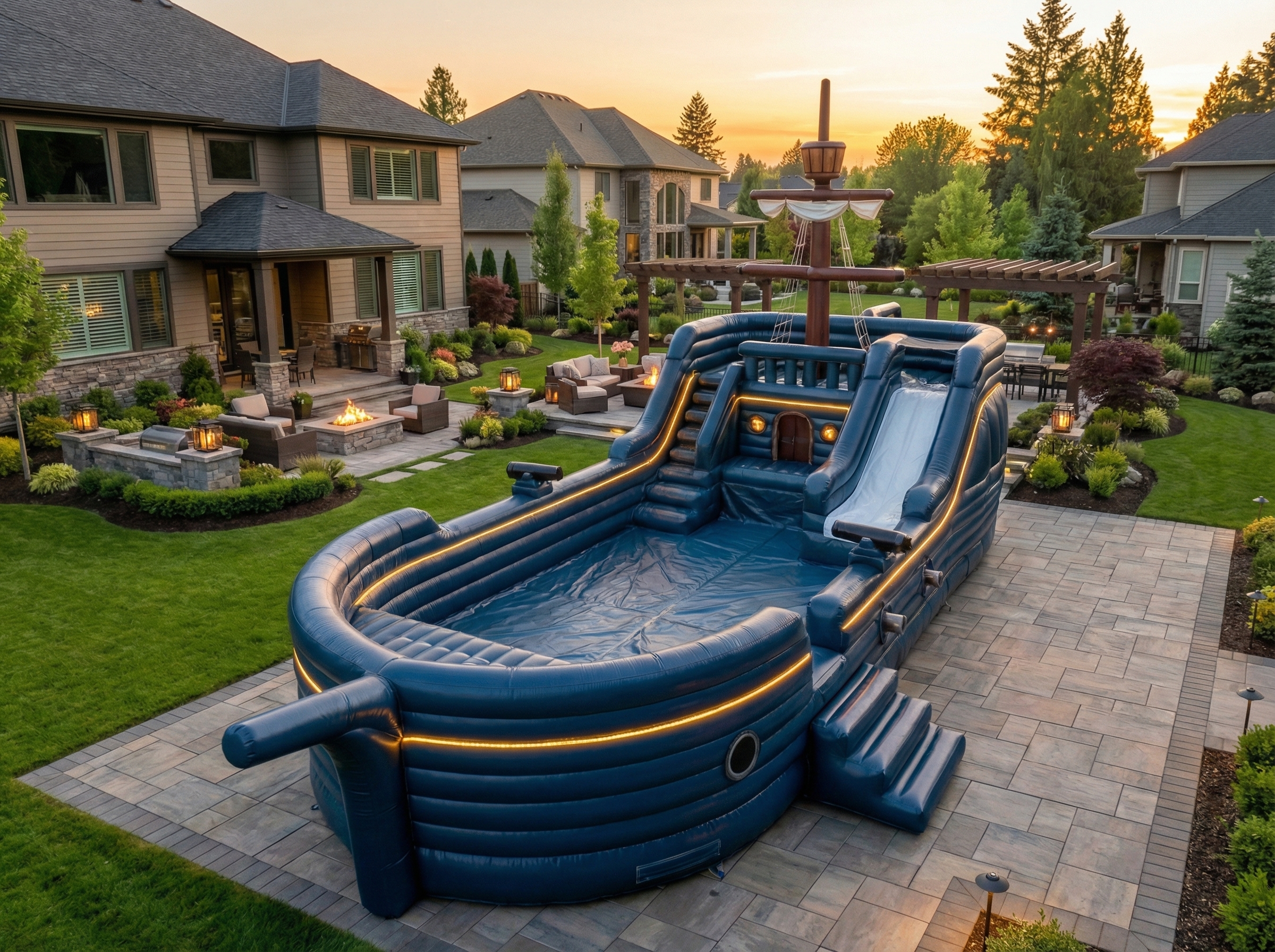 Giant Inflatable Pirate Ship Pool Setup: From Roll to Backyard Fun