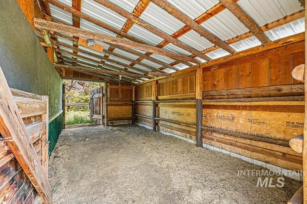 The property includes a large barn with one bedroom and one bathroom guest quarters. Additionally, an arena, hay storage, and shop stand ready for use. ATV storage supports trail riding across the acreage. Because these structures already exist, livestock and equipment needs stay covered. Fencing accommodates horses, cattle, sheep, or goats. This setup supports agricultural use without major additions.