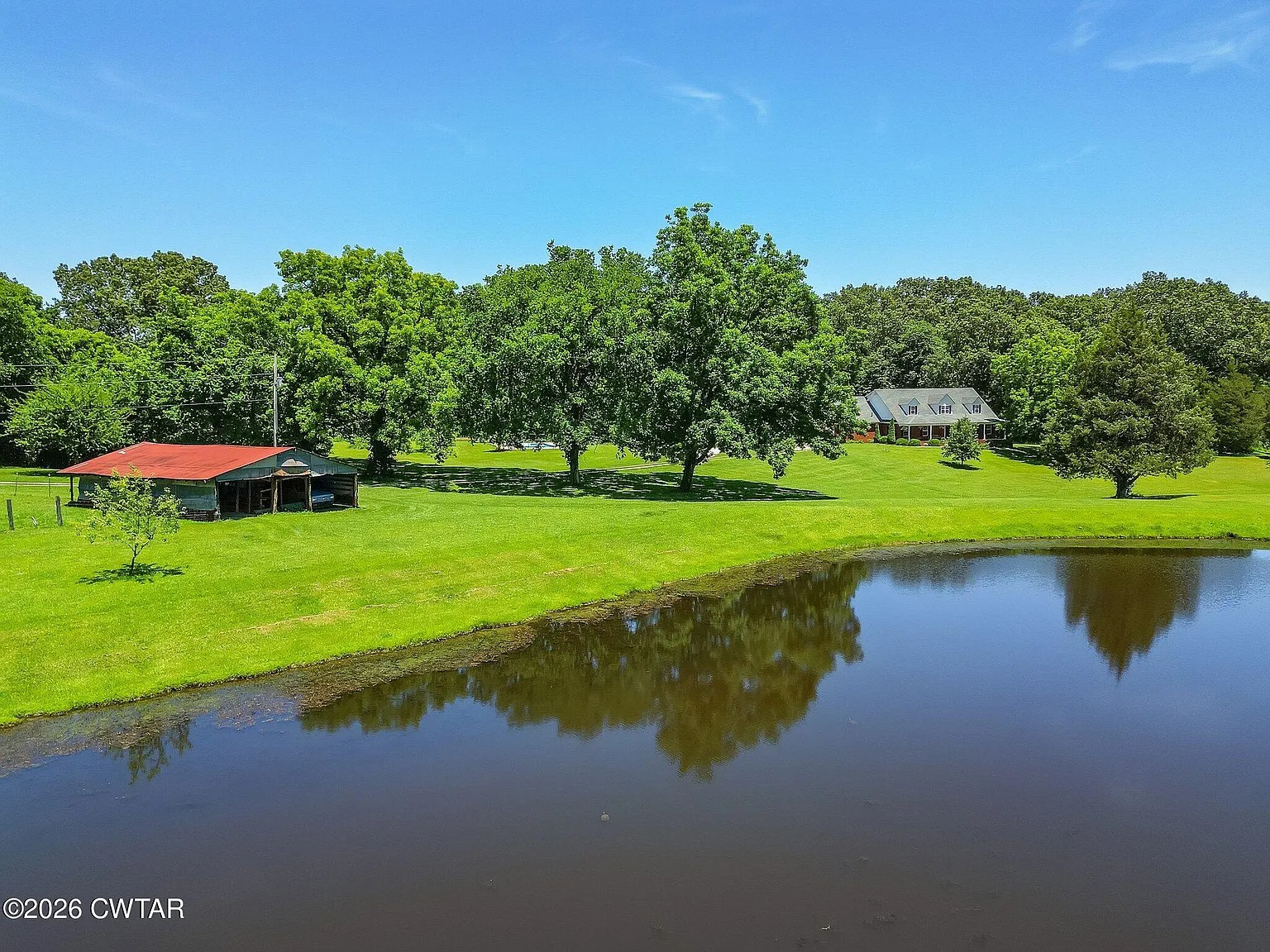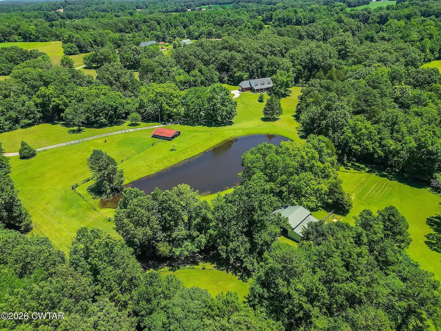 This six bedroom, four bathroom home sits on 59.3 acres just outside Medina, Tennessee. The house offers about 4,093 square feet of living space and was built in 1998. Because the land includes pasture, wooded areas, and a pond, the property leans toward rural living. At the same time, the house itself provides enough space for larger households or multi-use living. Someone looking for acreage with an established home may find this setup practical.