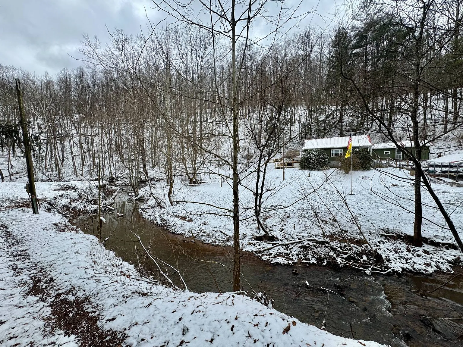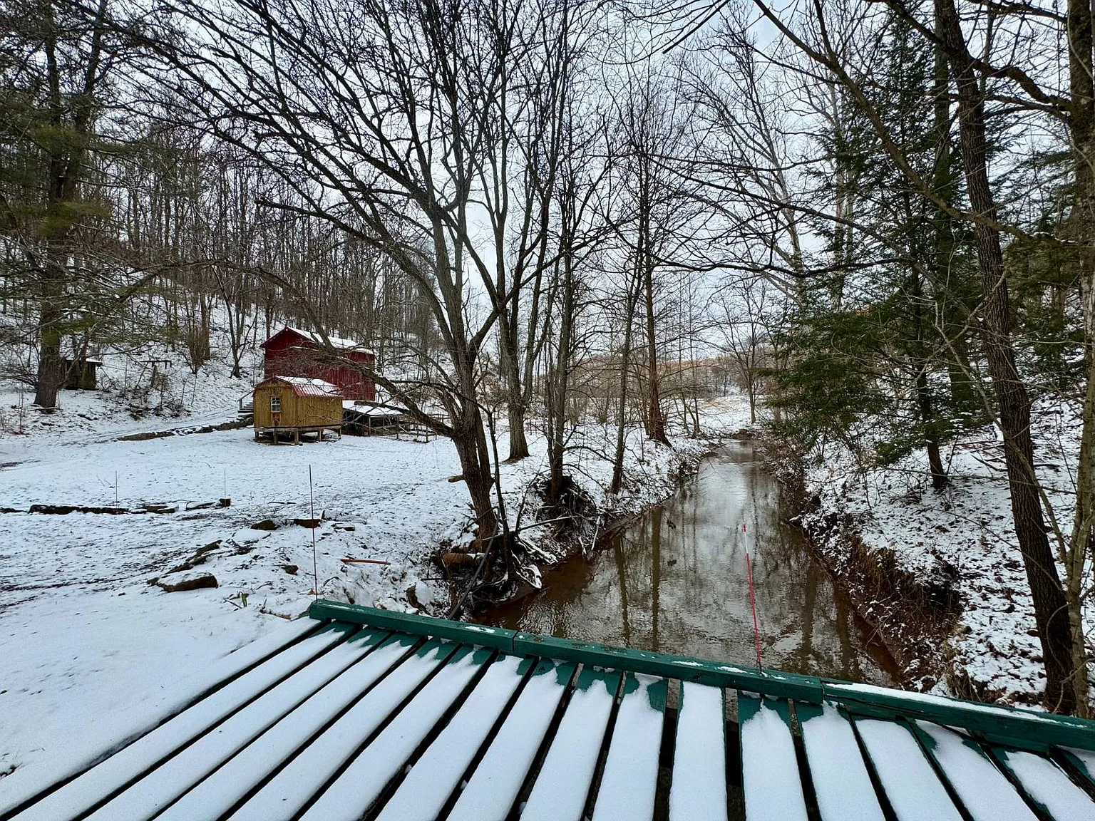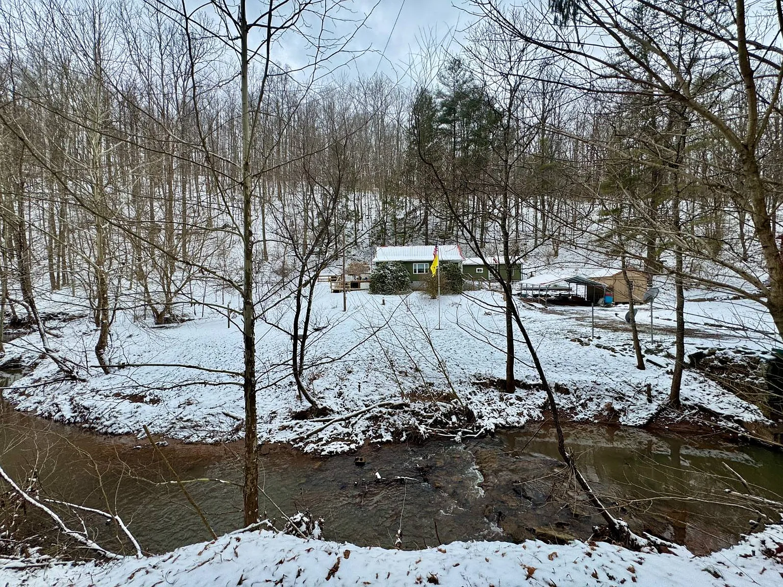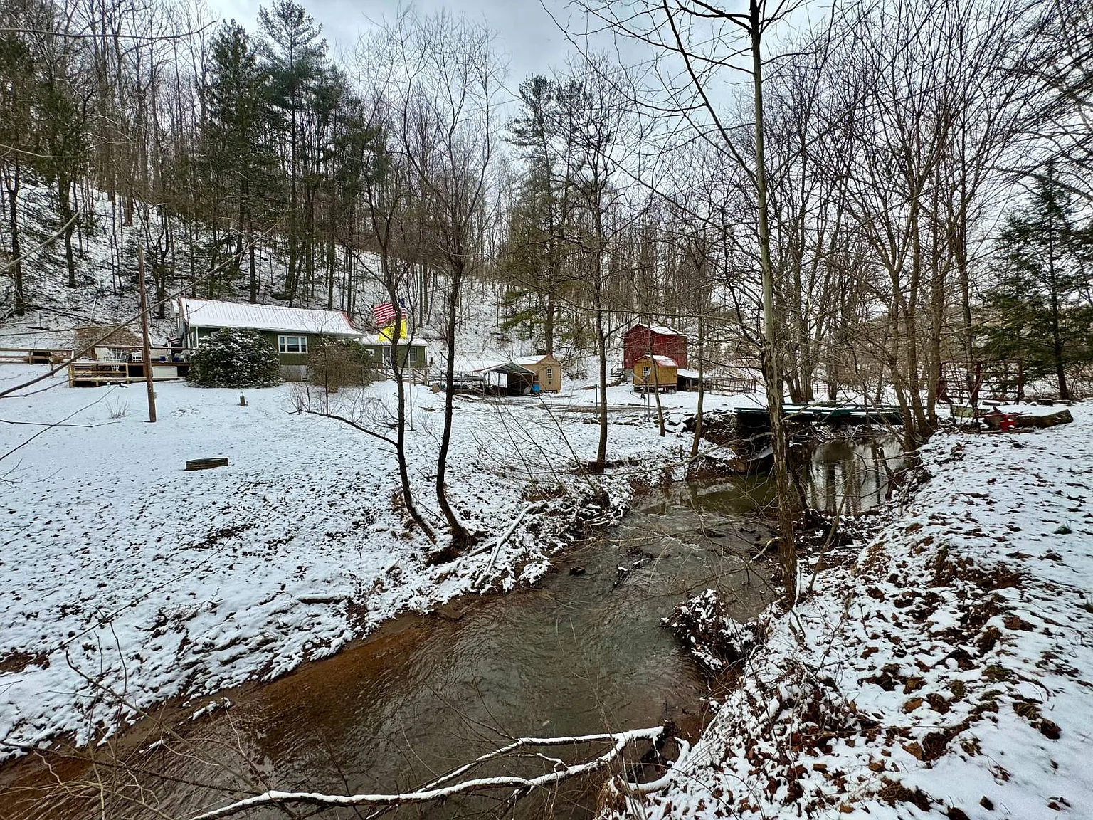 The creek running through the property adds a natural feature that may appeal to outdoor users. There are also trails and access points that make the land easier to navigate. The barn and additional buildings expand the usable space beyond the home itself.