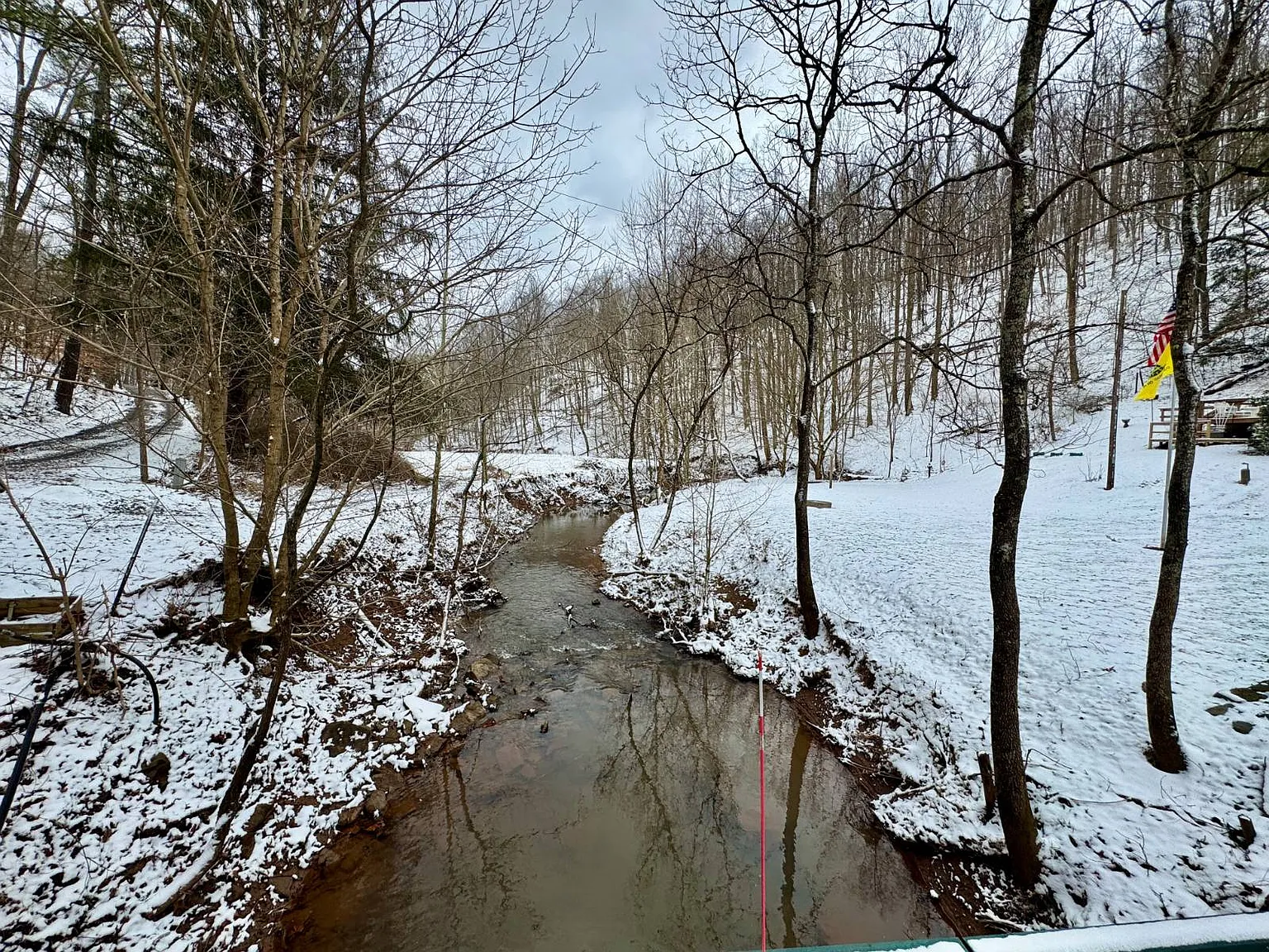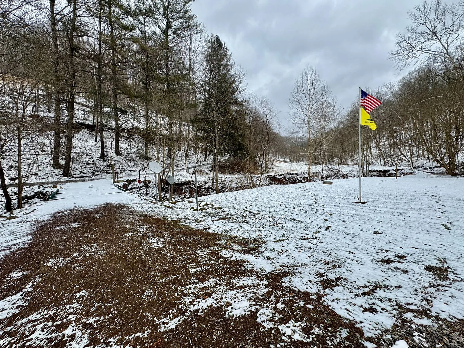 The 66.1-acre lot provides a mix of wooded land, a meadow, and a stream. This variety supports different outdoor uses. For example, some areas could be used for gardening or small-scale farming. Meanwhile, the wooded sections offer privacy and space for exploration.