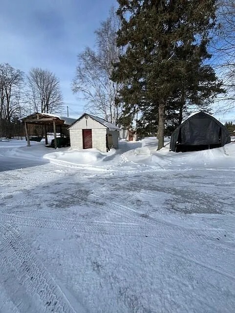 A large 40 by 50 two story barn stands on a cement block foundation. The metal roof supports long term durability and storage use. Additionally, a lean-to structure and multiple sheds provide extra space. Because these buildings already exist, equipment and supplies remain protected. The barn suits hay storage, livestock shelter, or workshop use. These structures add practical value beyond the home itself.