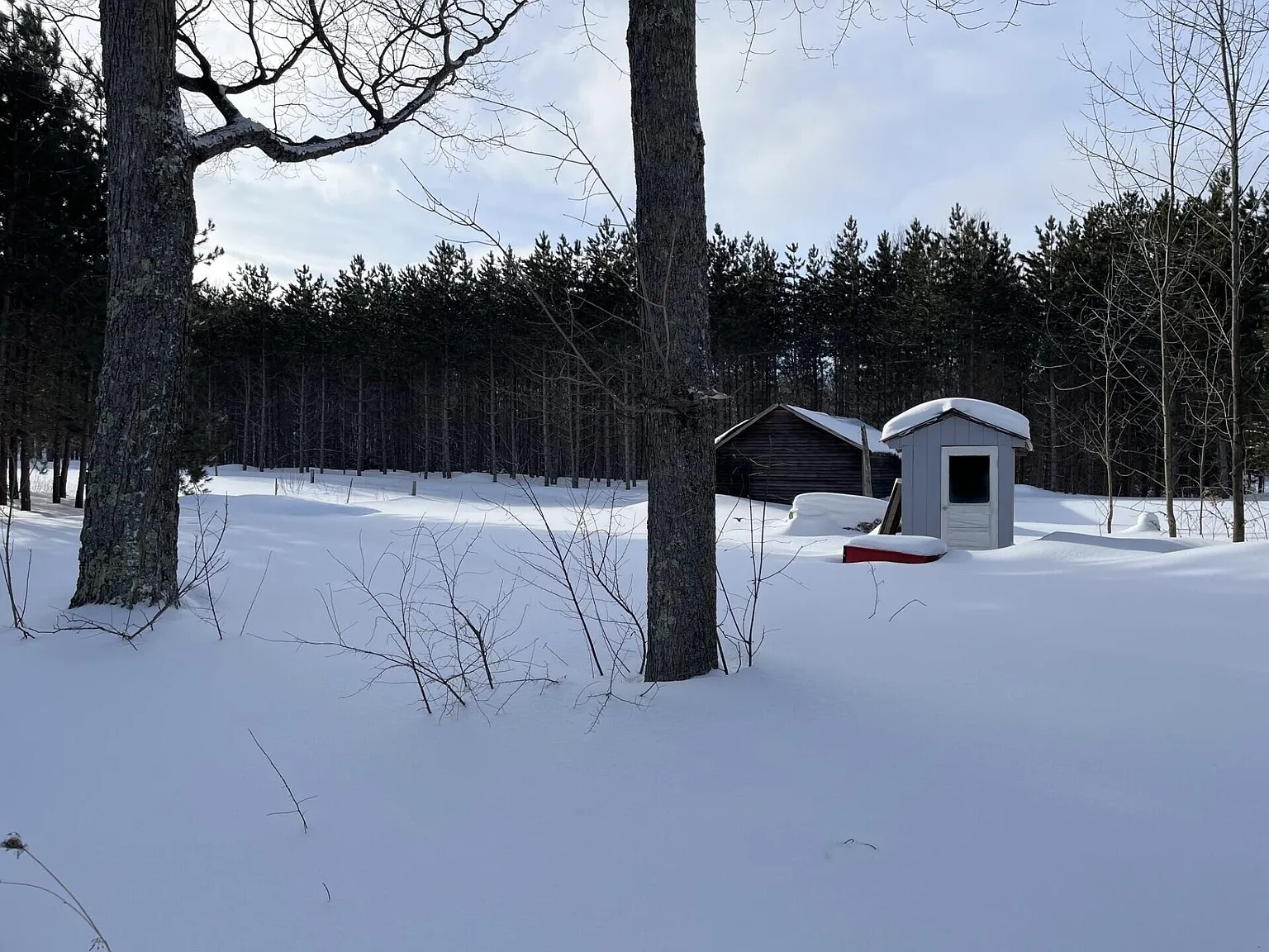 The land includes a mix of forest and open ground throughout the acreage. Hardwood sections provide cover and natural food sources for wildlife. Additionally, red pine areas add diversity to the terrain. Clover fields support deer activity and seasonal growth. Because the ground remains mostly high, access stays manageable year round. The varied terrain supports both recreation and agricultural use. Owners can manage sections gradually while preserving natural habitat.