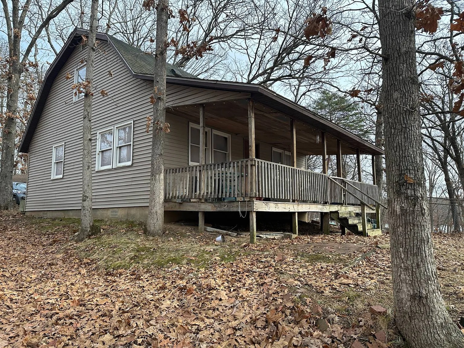 This lake cabin in Carlinville, Illinois offers a relaxed setting with direct water views. Built in 1997, the cabin sits beside Lake Carlinville on a leased lot. The location supports weekend escapes while also fitting year round living. Because the home faces the lake, daily routines include changing views and outdoor activity. The structure balances simplicity with function across two levels. Moreover, the cabin layout supports flexible use for individuals or small households. This property focuses on lifestyle rather than excess. As a result, it attracts buyers seeking time near water.