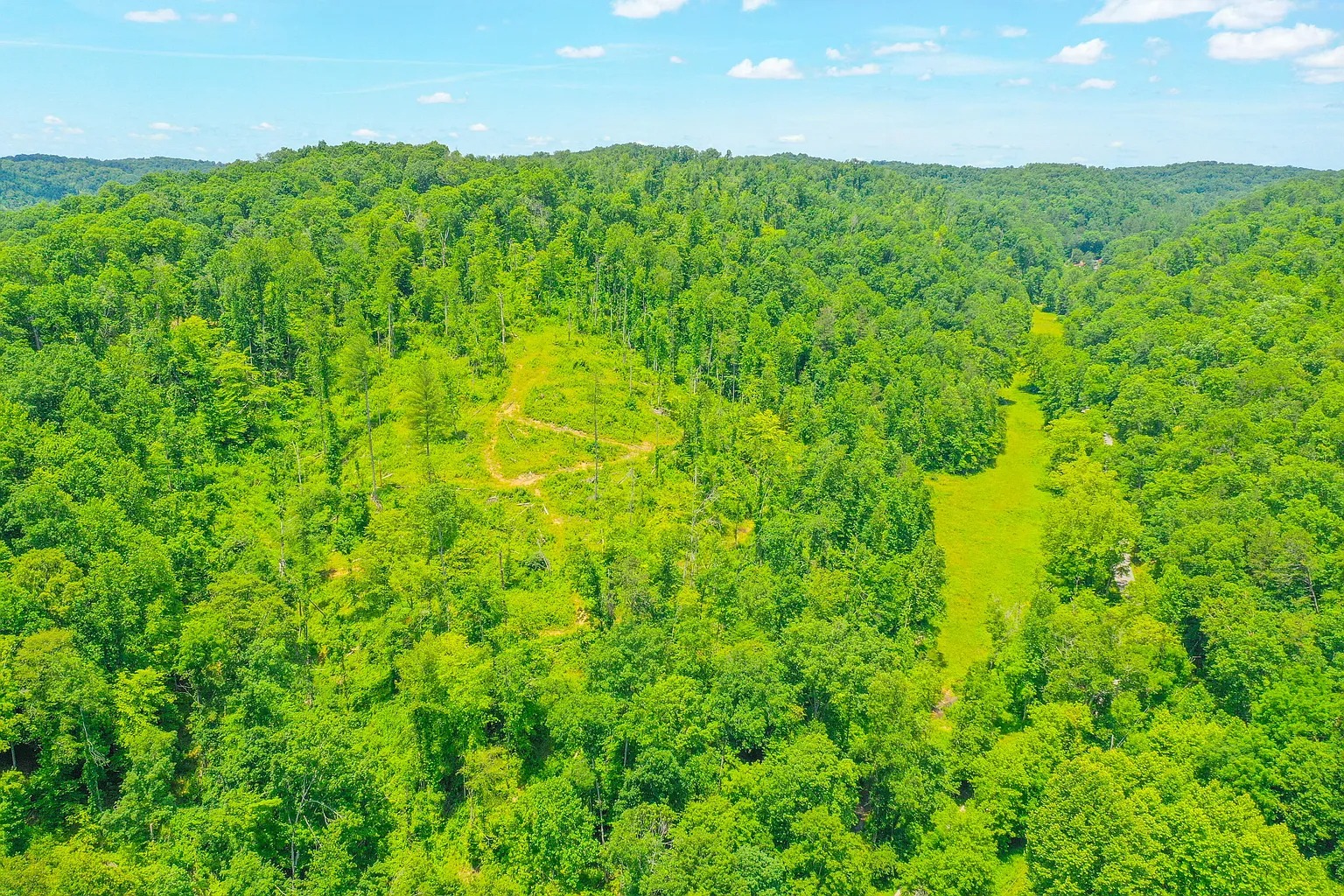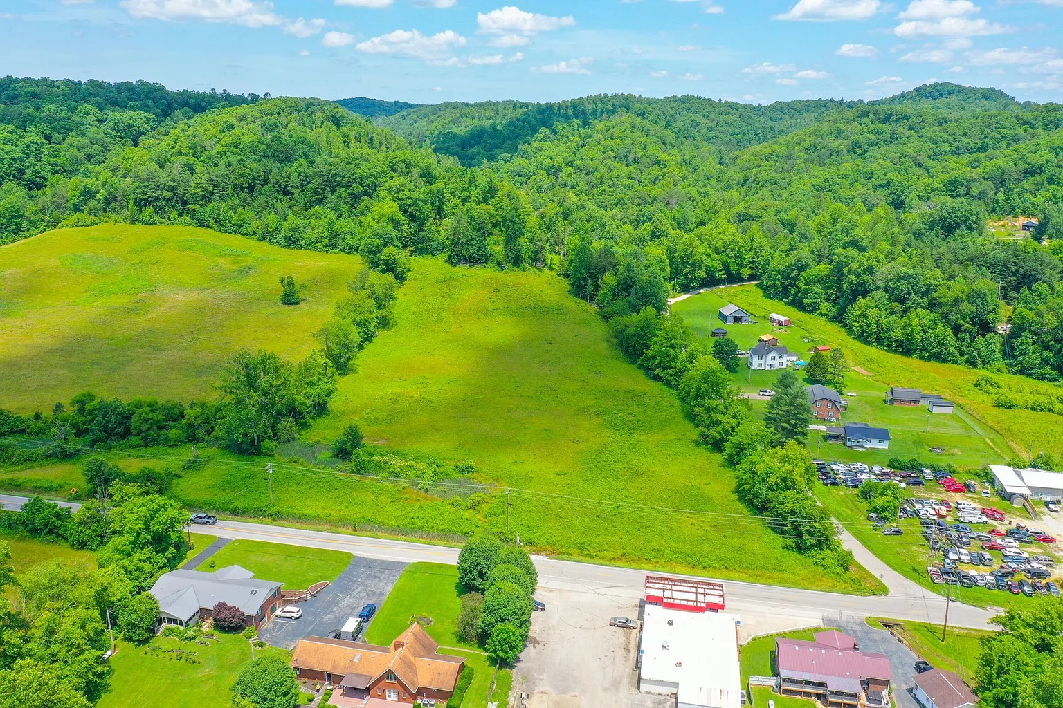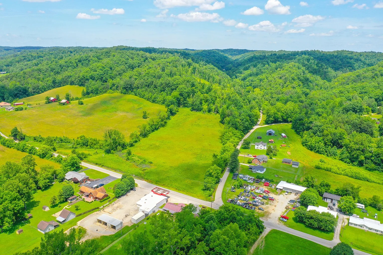 The land also includes rural views and natural terrain typical of eastern Kentucky. A creek feature runs through part of the property. Water features like this often attract wildlife and provide natural scenery.