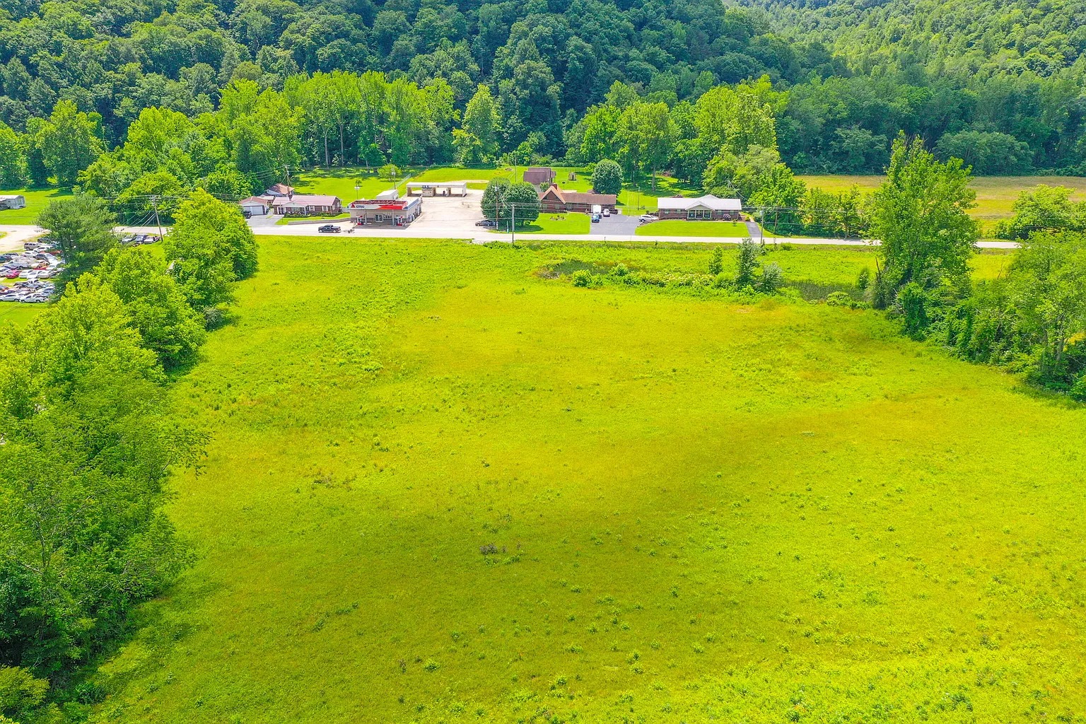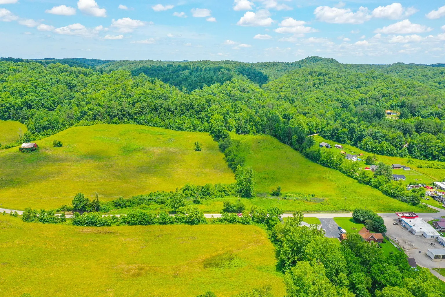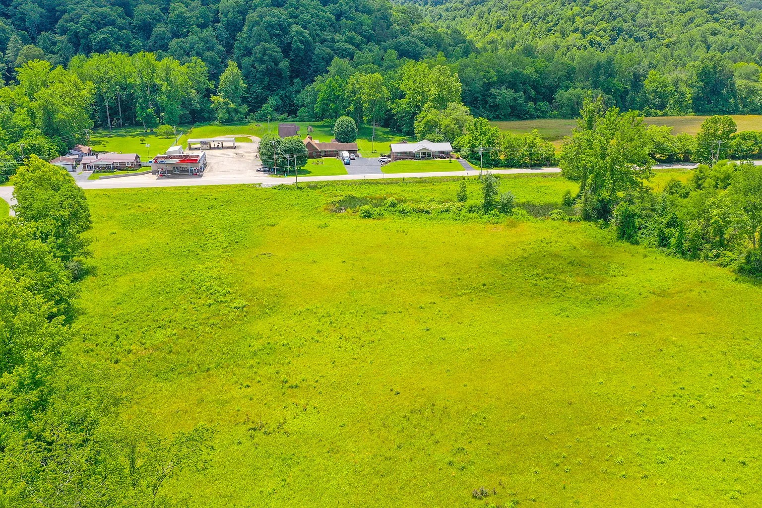 The land also includes rural views and natural terrain typical of eastern Kentucky. A creek feature runs through part of the property. Water features like this often attract wildlife and provide natural scenery.