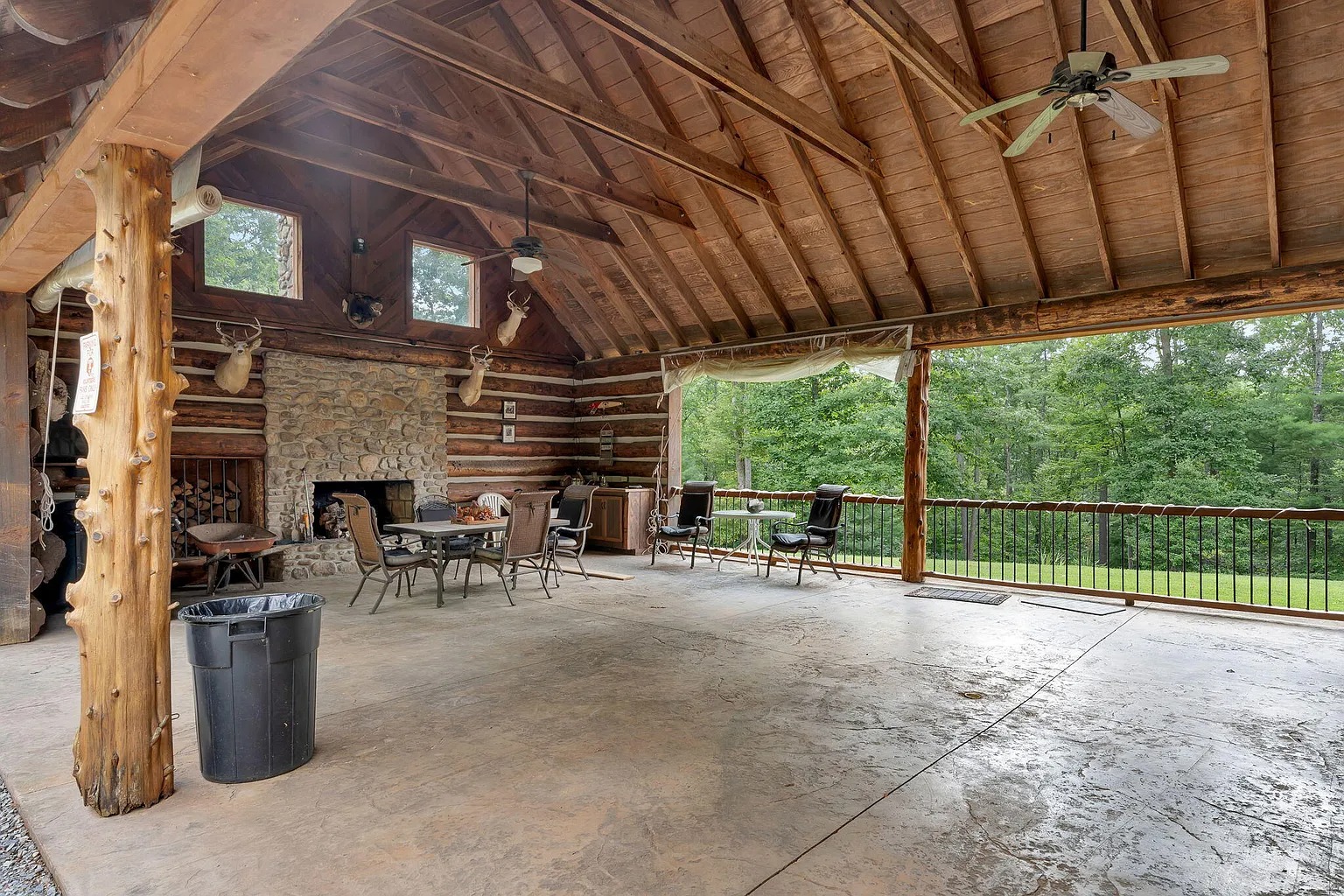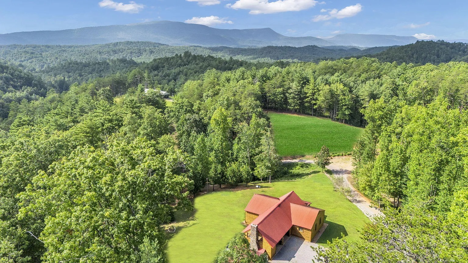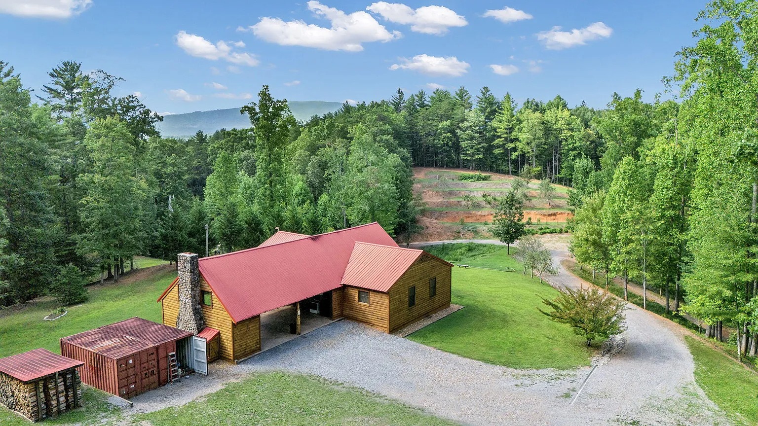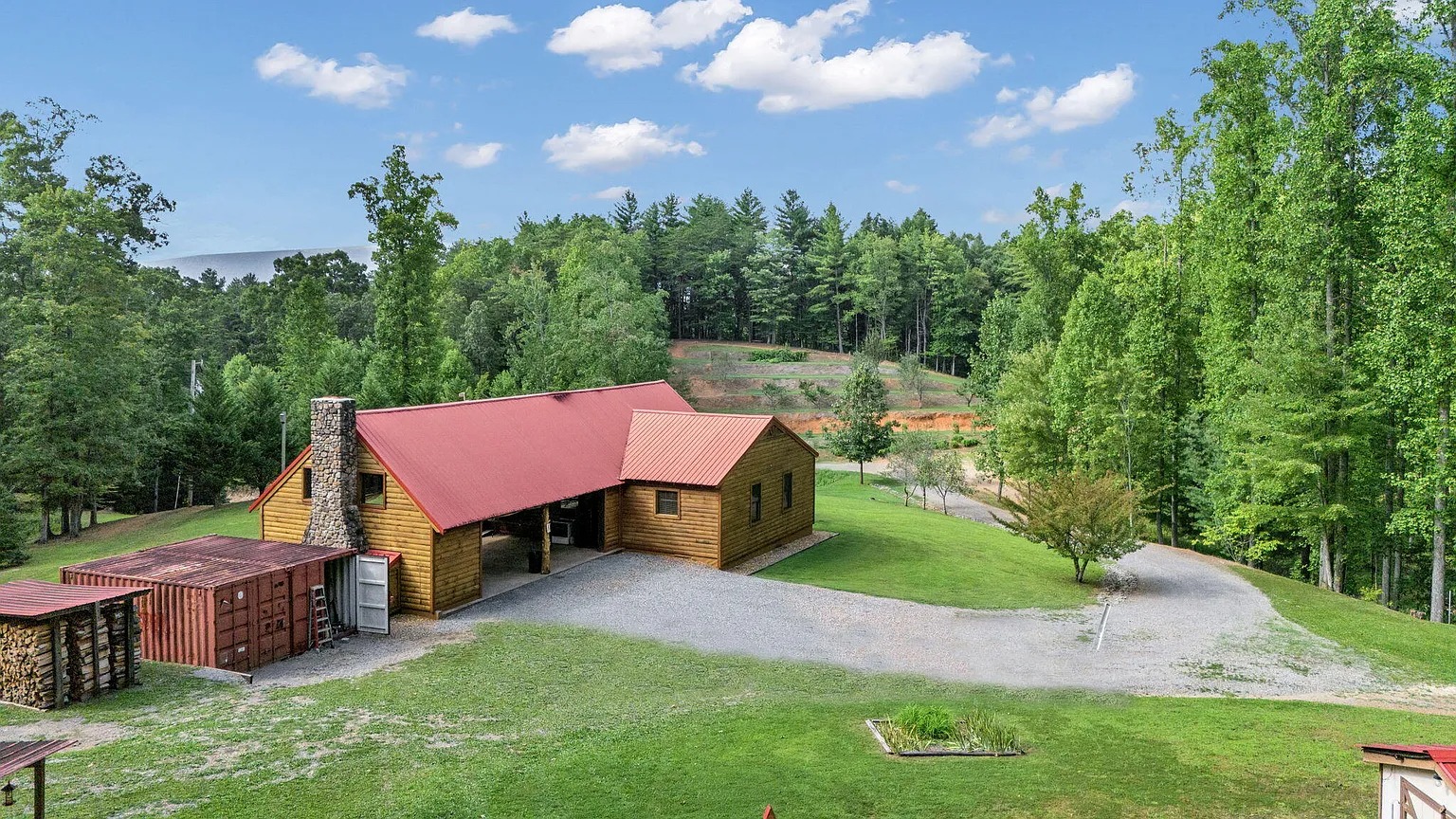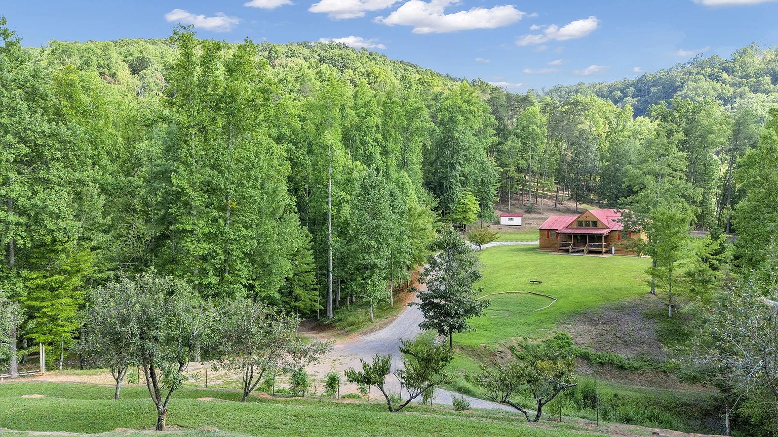 This 38.9-acre property in Reliance, Tennessee, features a rustic log cabin surrounded by the Cherokee National Forest. Built in 2006, the 1,792-square-foot home includes three bedrooms and three bathrooms, offering both space and privacy.