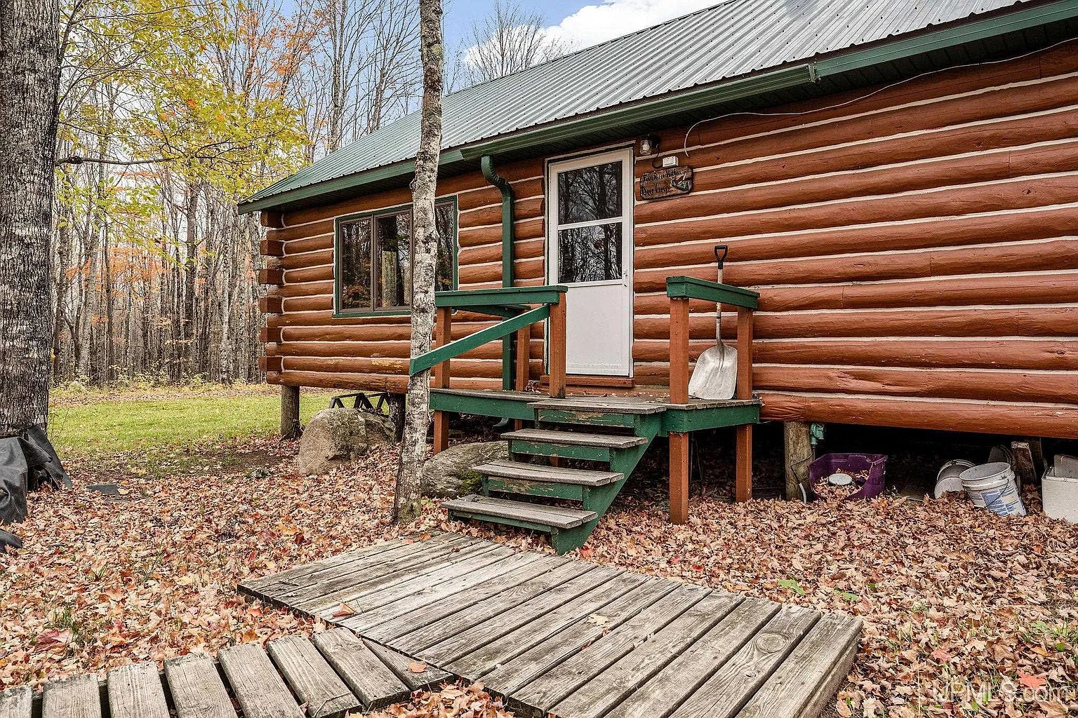 This classic Upper Peninsula log cabin sits on 80 acres of peaceful, forested land in Iron County. The property lies in the heart of deer and grouse country, surrounded by hardwood trees and wildlife. Moreover, the Fence River flows through the east side of the property, offering scenic beauty and quality brook trout fishing. Because of this location, the cabin creates a true off-grid retreat for outdoor living and recreation.