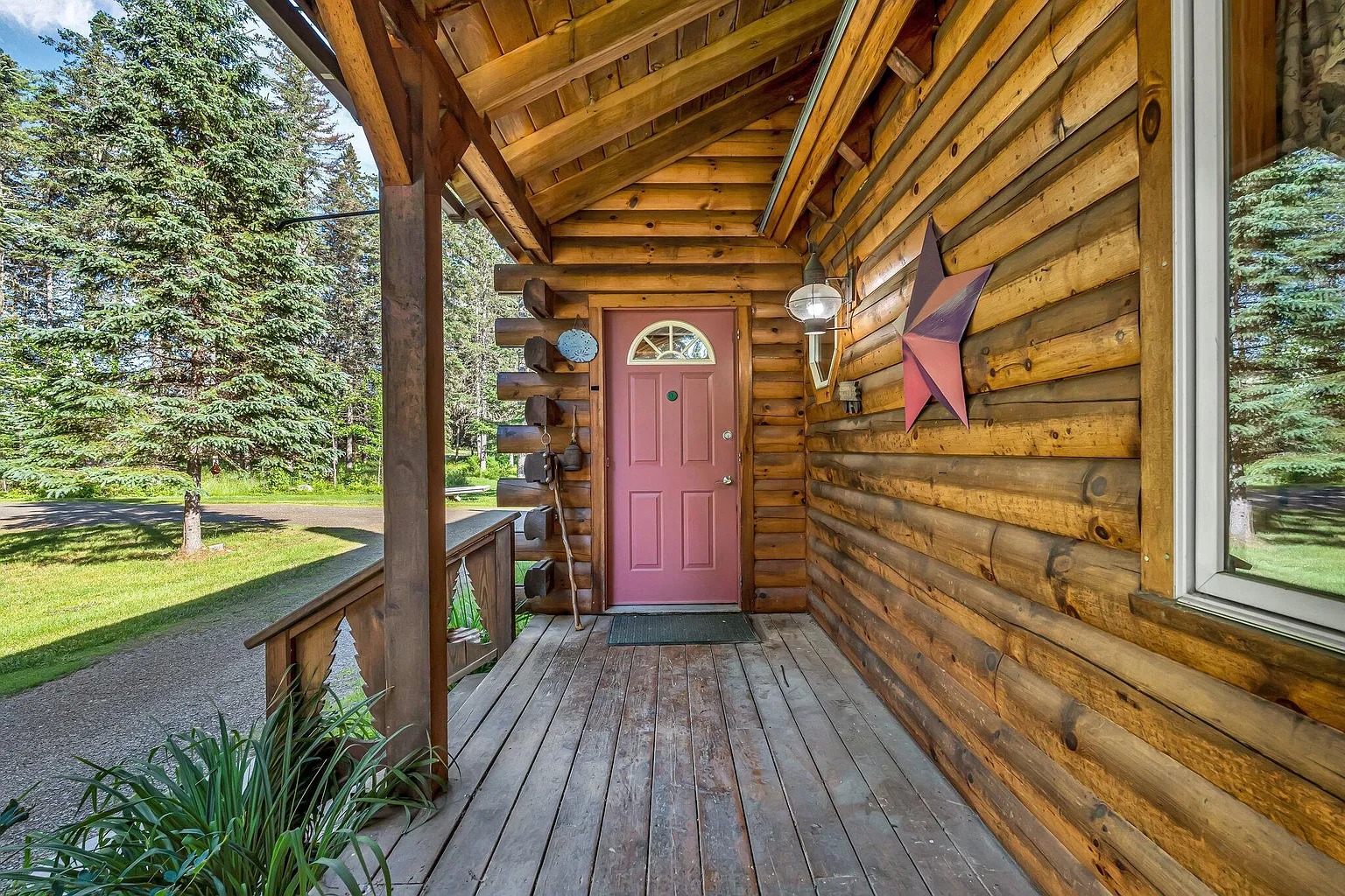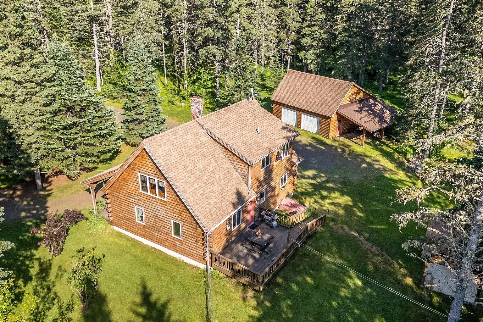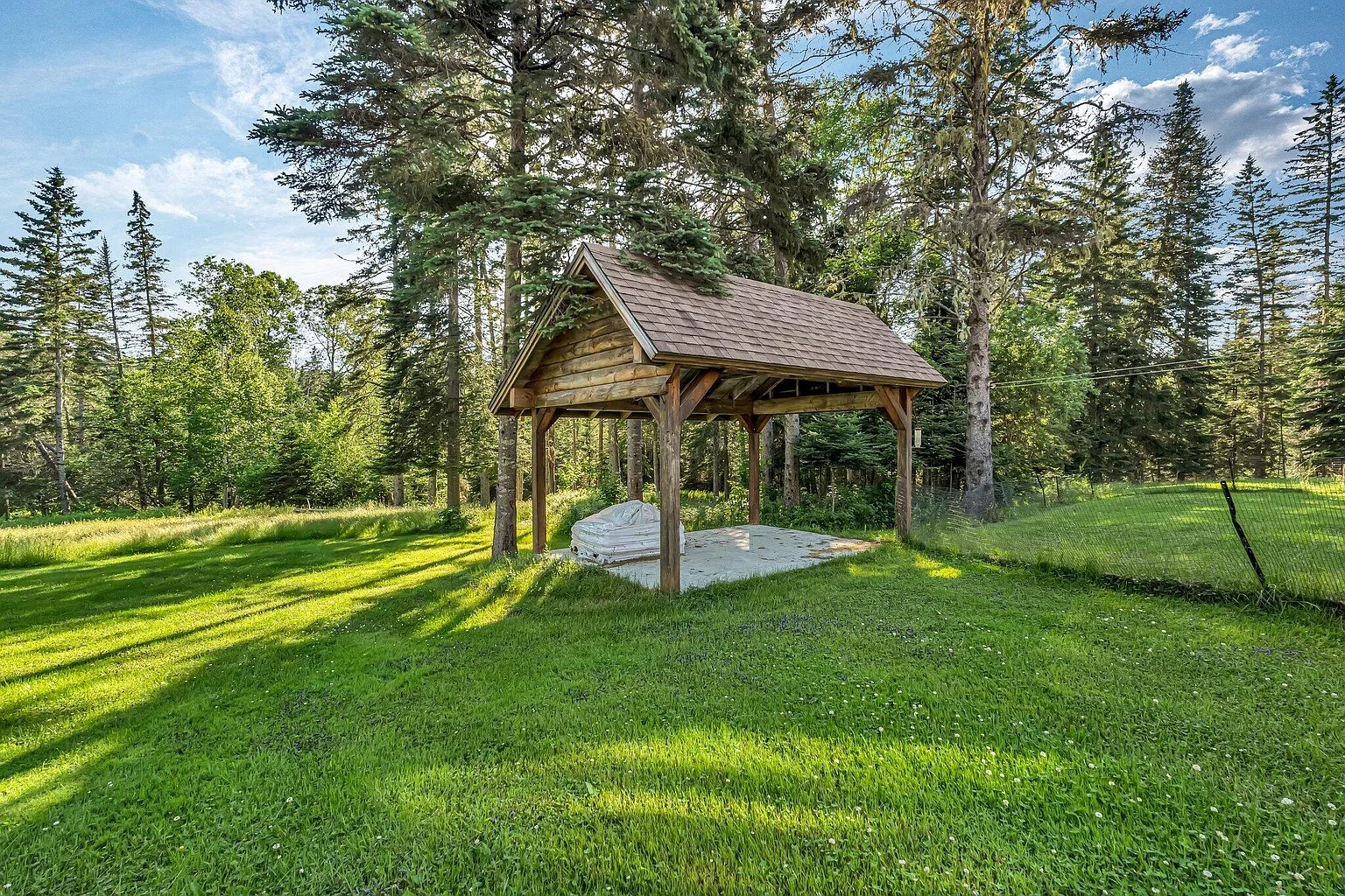 A large lawn surrounds the house for outdoor activities and gatherings. A small stream runs across the property, which adds natural sound and scenery. A deck and picnic pavilion create space for outdoor meals. Because these features already exist, entertaining outdoors stays easy. The land supports walking, relaxing, and seasonal use. This setting blends usable yard space with natural surroundings.
