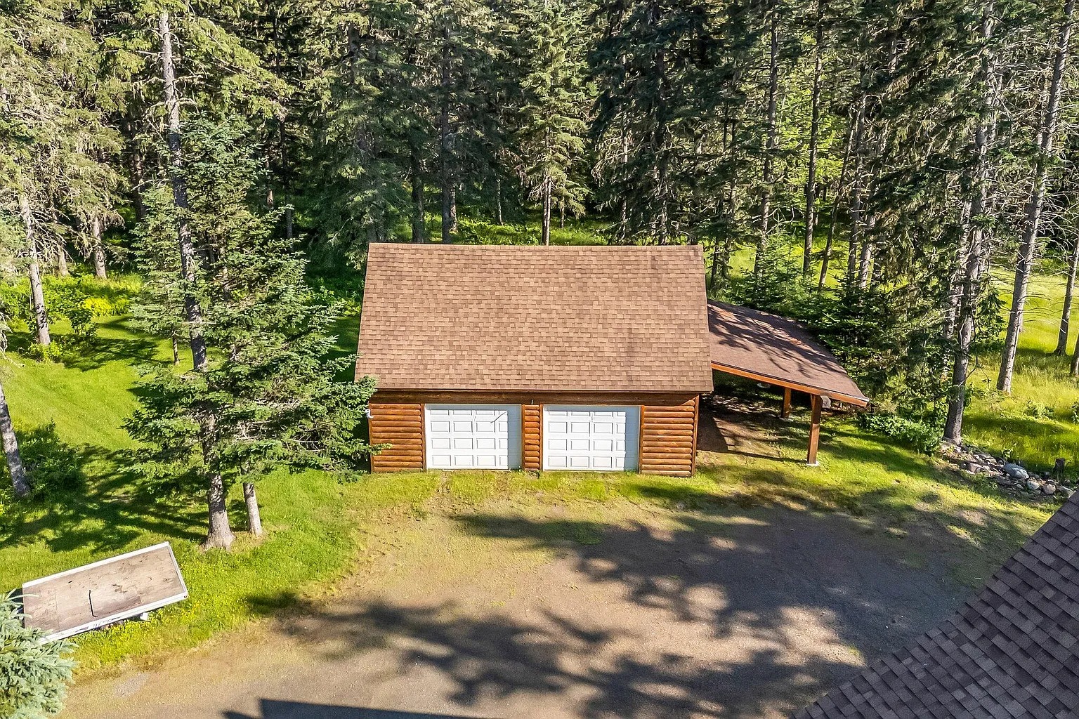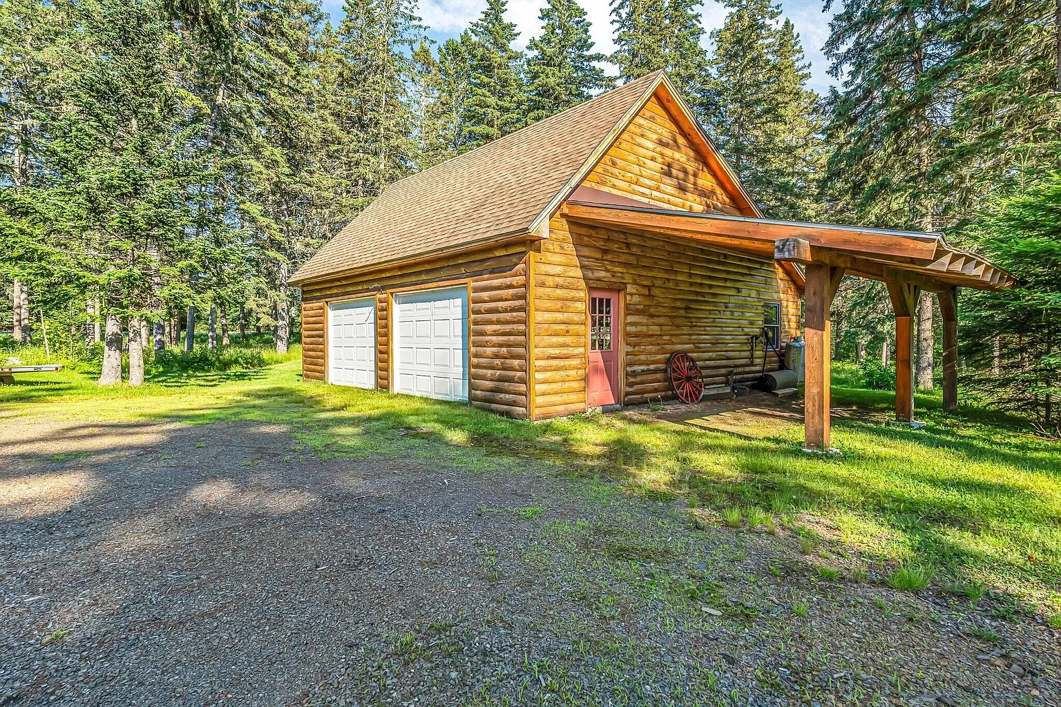 An oversized two-car garage includes a third overhead door for drive-through access. A carport adds additional covered parking. An on-demand generator supports power reliability when needed. Because storage and parking remain covered, equipment and vehicles stay protected. These features add everyday function beyond the living space. Owners gain flexibility for seasonal gear and maintenance tasks.