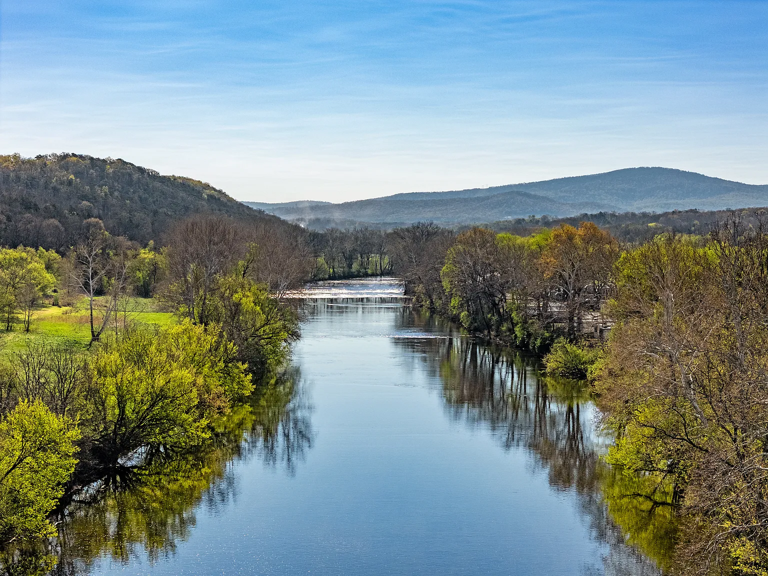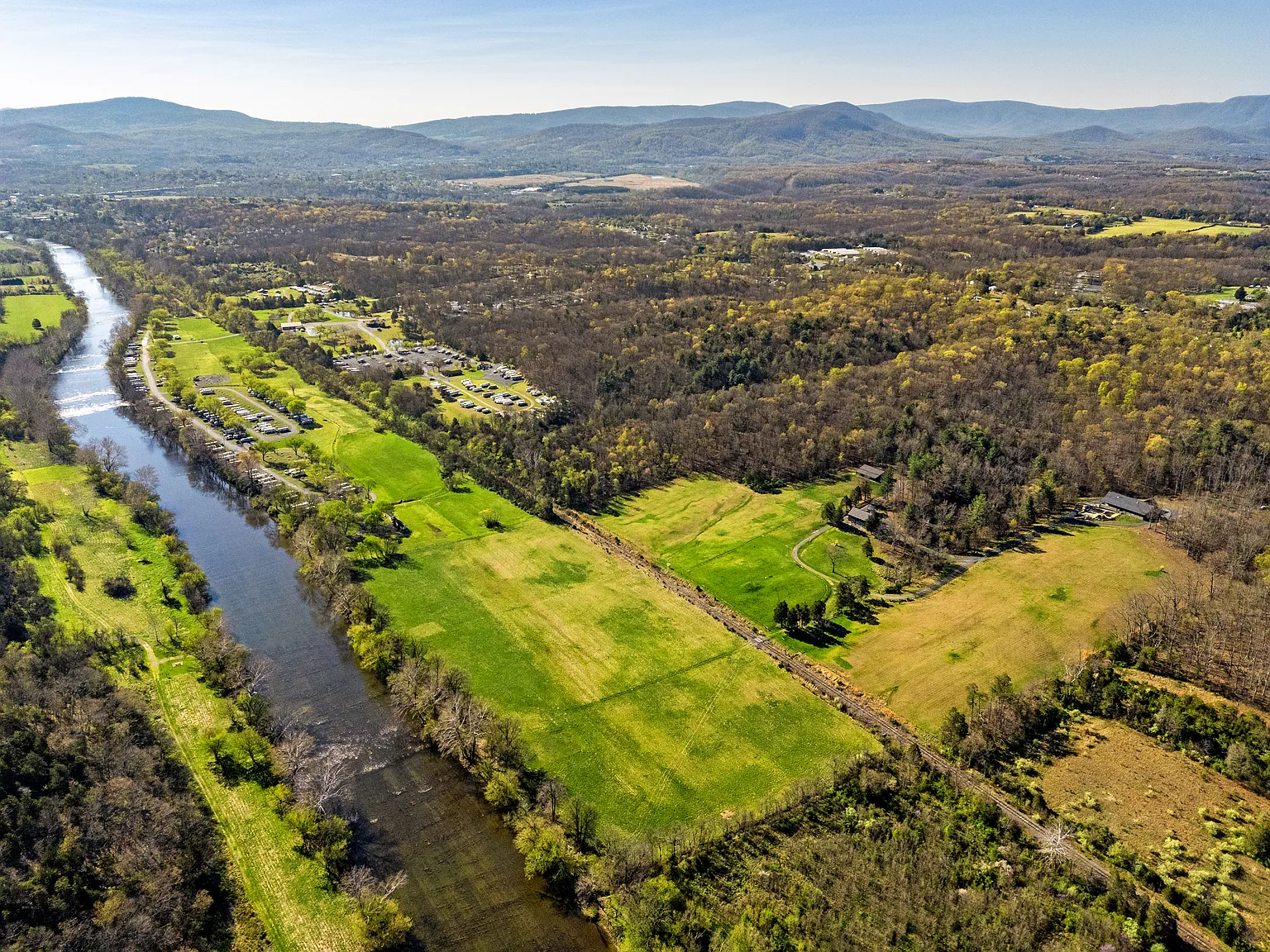 The property sits just over an hour from Washington, D.C. This distance works for people who split time between city work and quieter home life. The river and acreage fit routines that include time outside, whether for maintenance, animals, or simple relaxation.