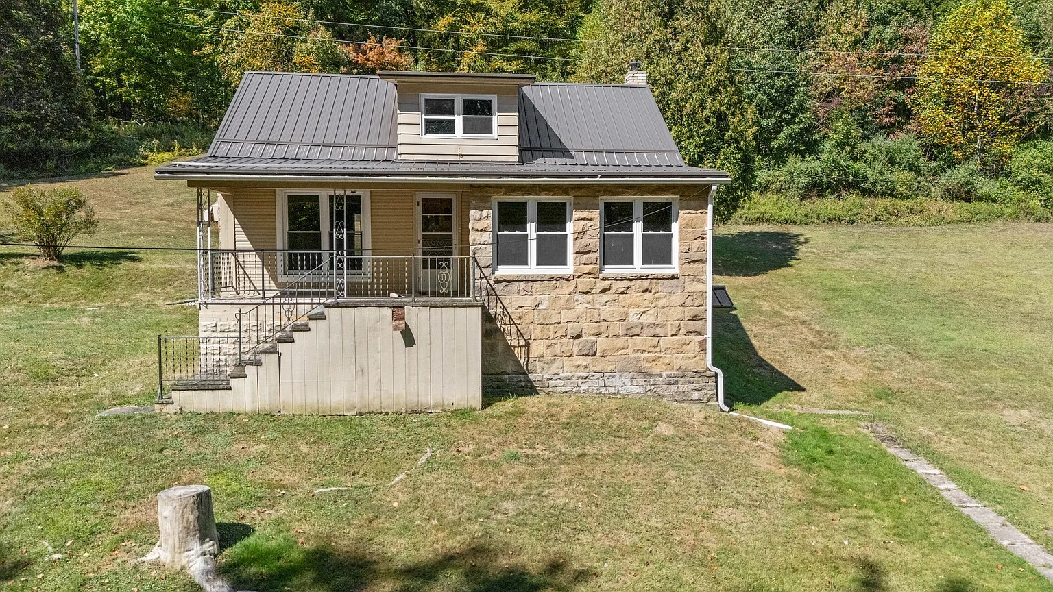 This 5-acre property in Coalport, Pennsylvania, combines historic character with outdoor access. Built in 1940, the 1,580-square-foot stone homestead once featured three bedrooms and one bathroom.