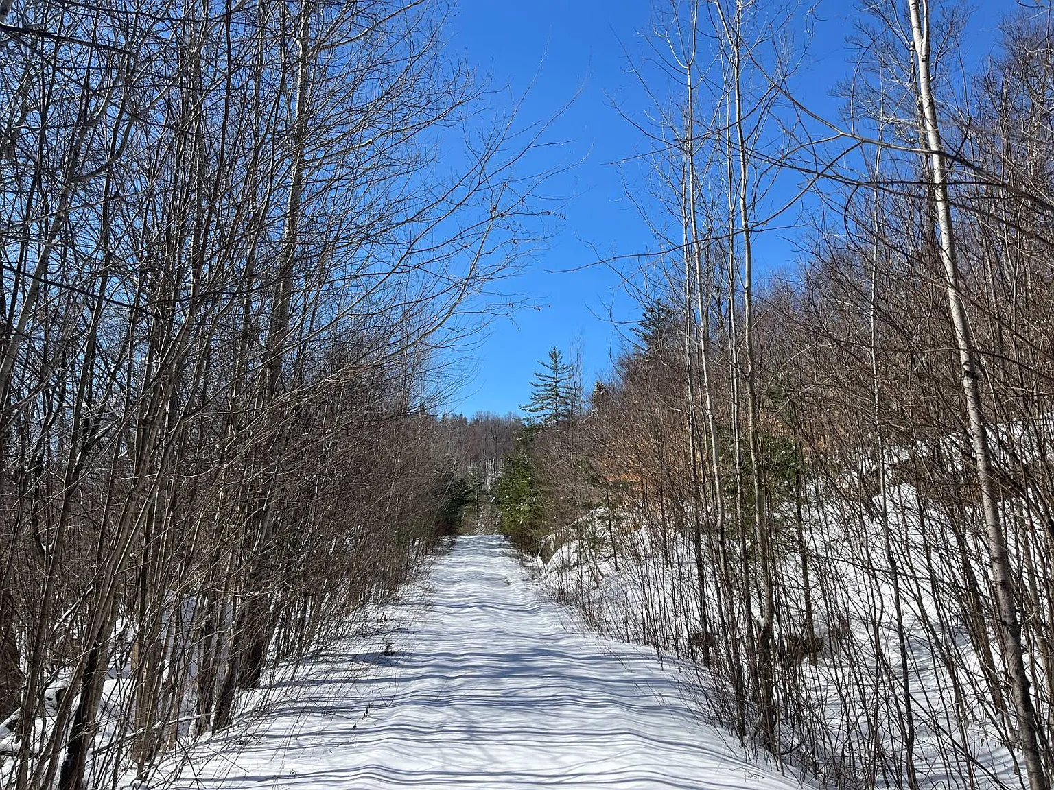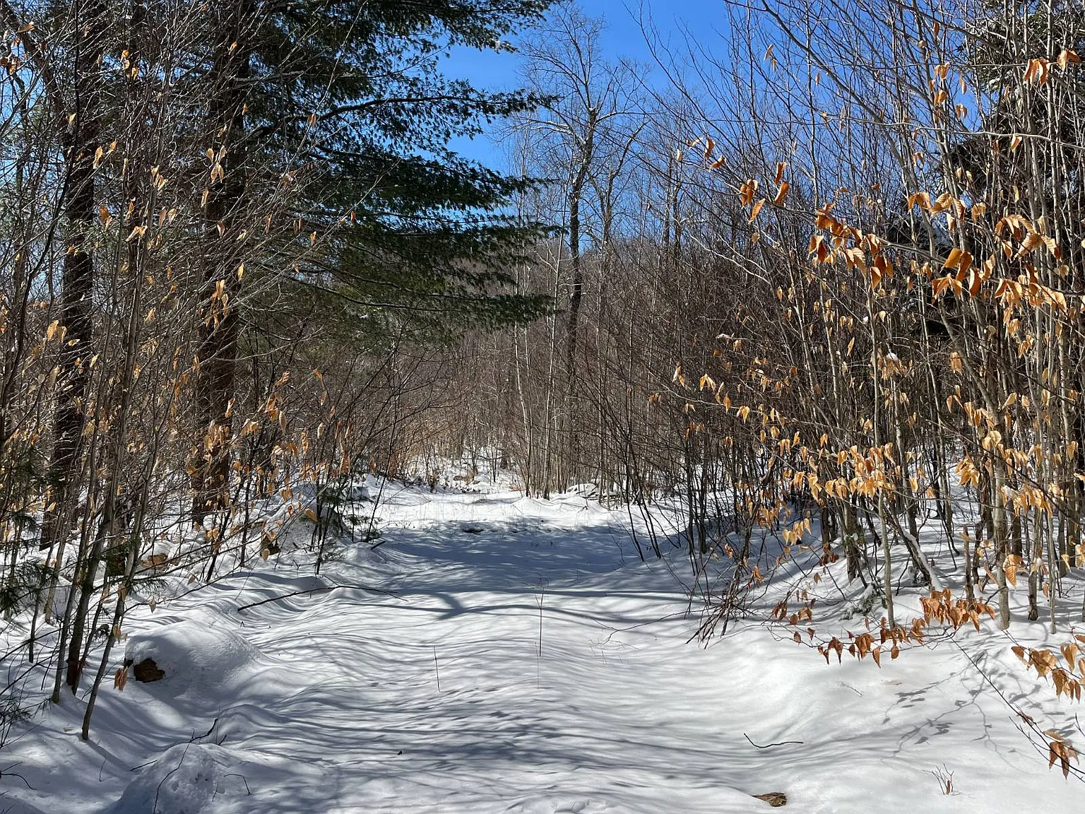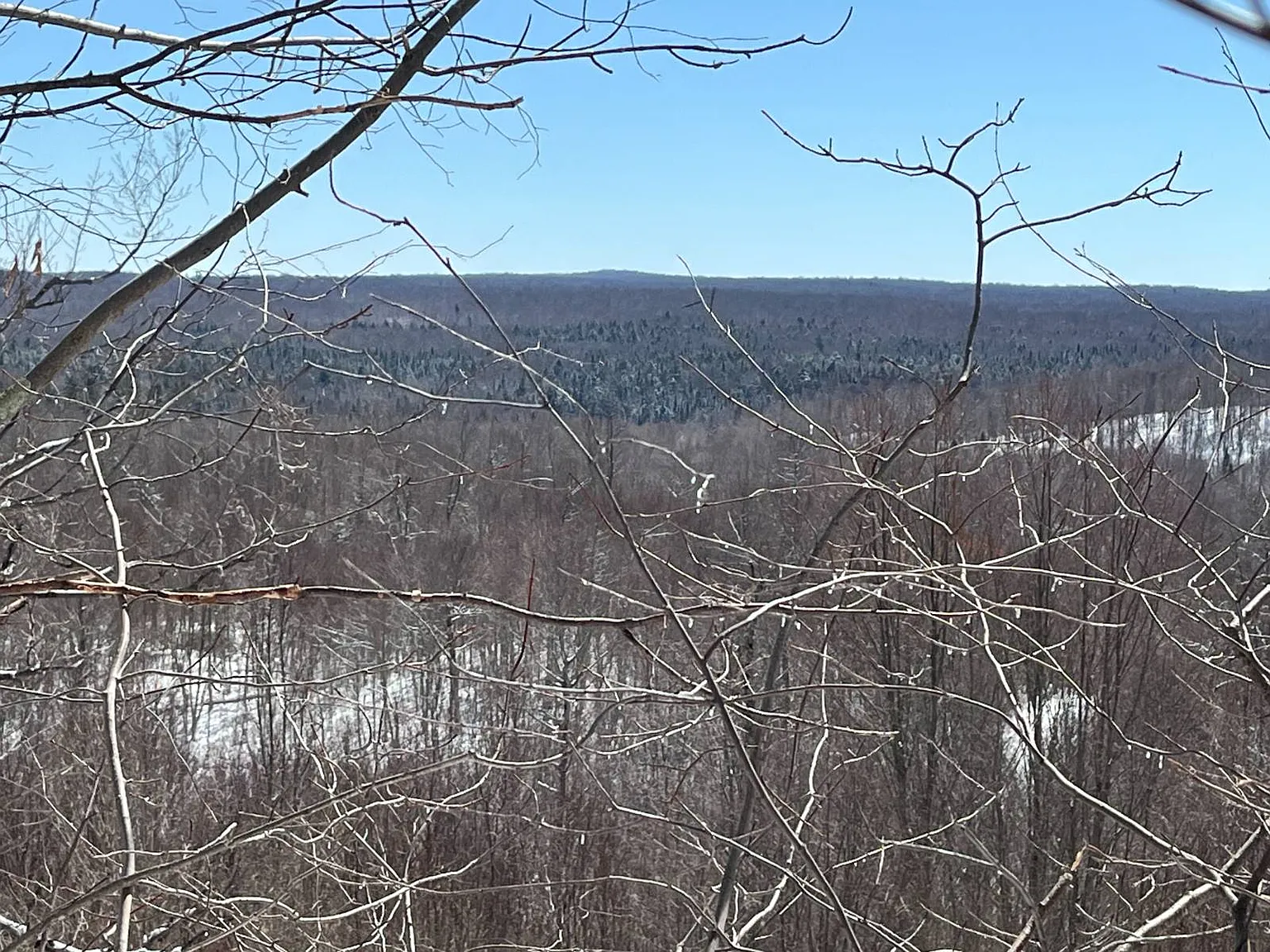 The land varies from flat ground to rugged ridgelines. Hardwoods such as maple, cherry, birch, and poplar cover much of the acreage along with some spruce and white pine. Expansive views open from higher areas. Access comes via a private gated gravel road that turns seasonal. The cabins sit directly off this road for easy reach. All boundaries have been surveyed and clearly marked, which helps with planning trails or selective use of the space.